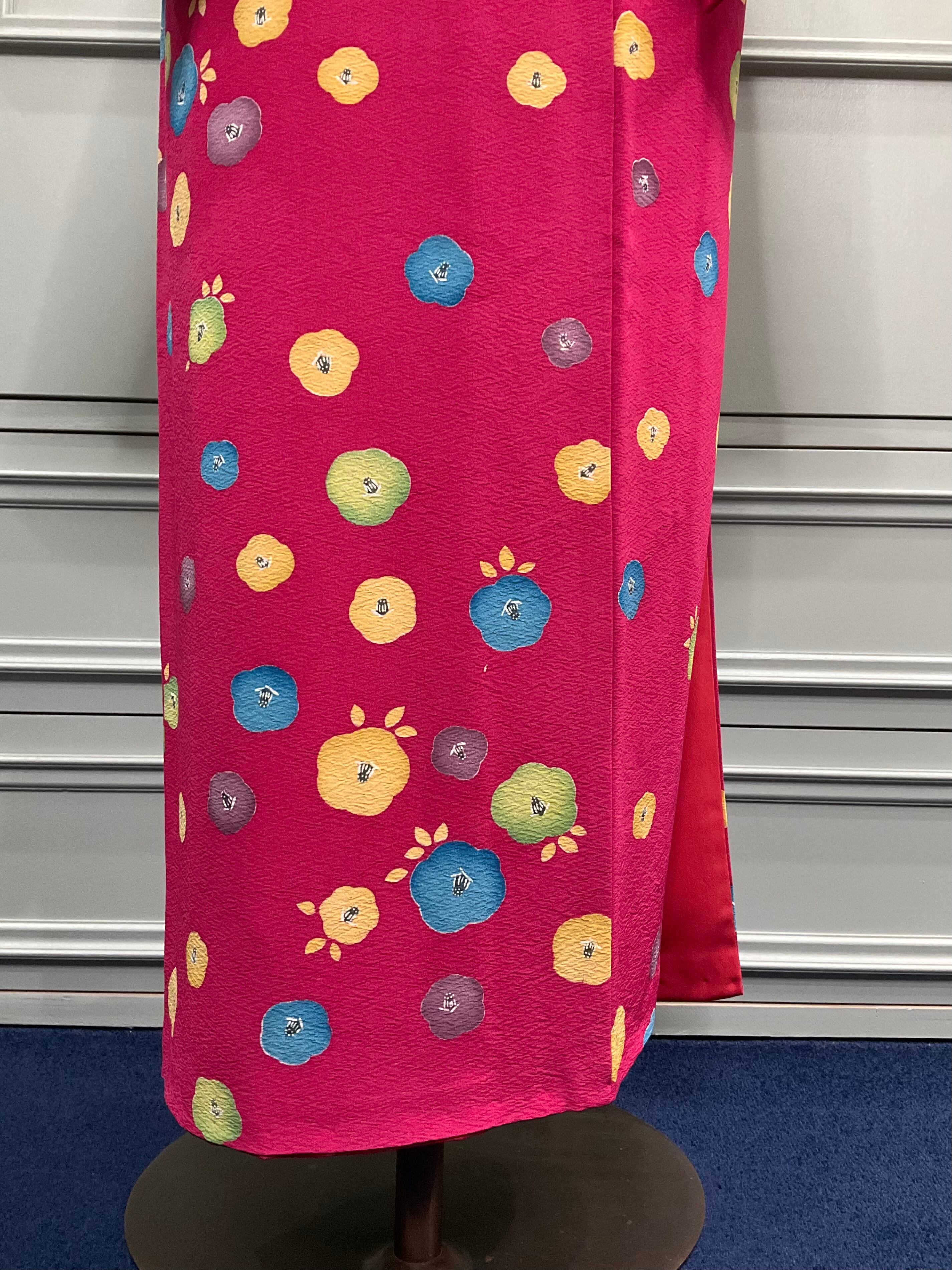 ロング*ルビーピンク キャンディ・カメリア*リサイクル小紋キモノ 0590