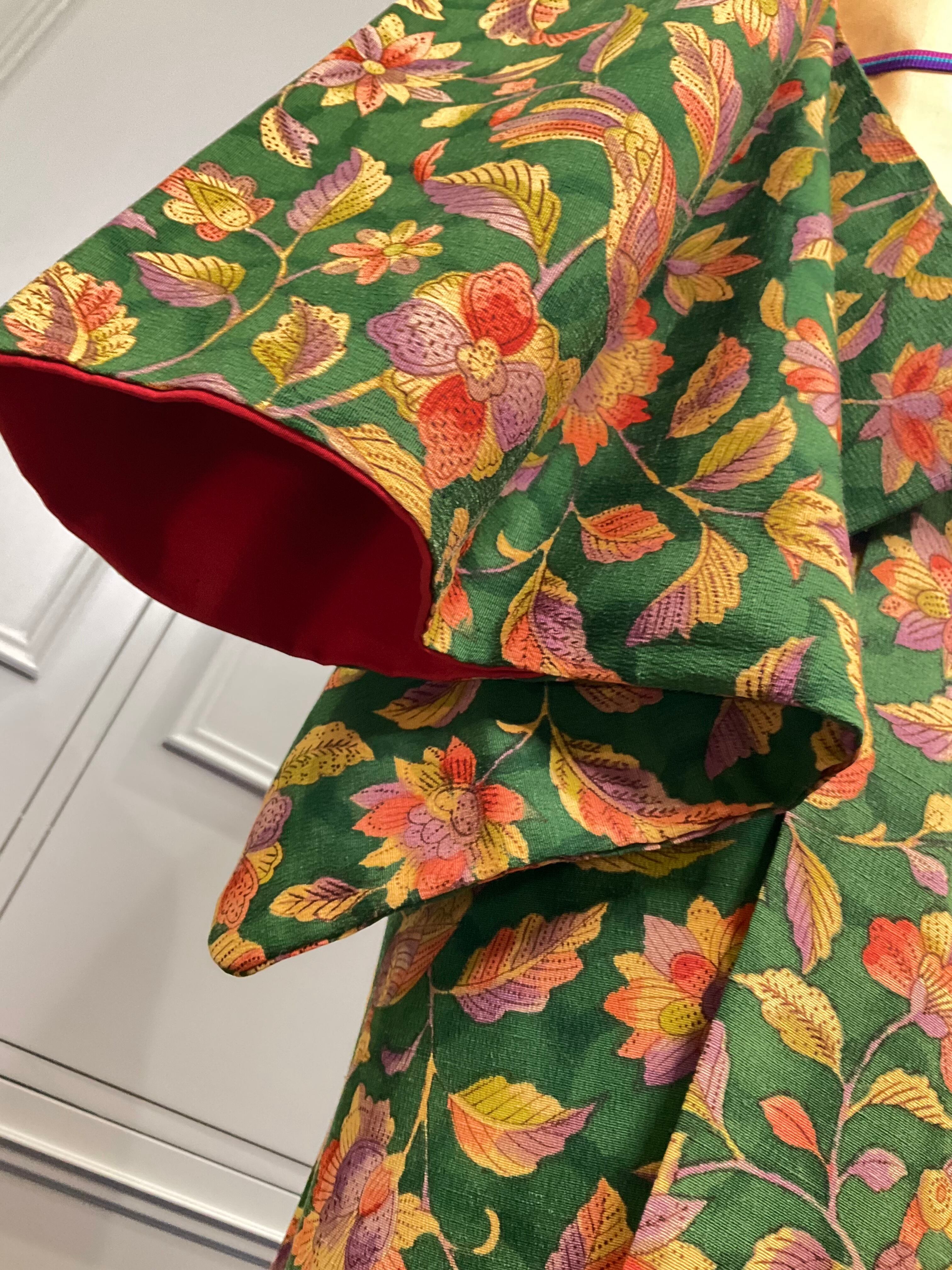 こっくりしたグリーンの地色に、レトロ感がある花模様が、とてもオシャレですよね✨