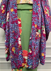 赤紫色の地色に、花模様がデザインされたアンティーク長羽織です♪