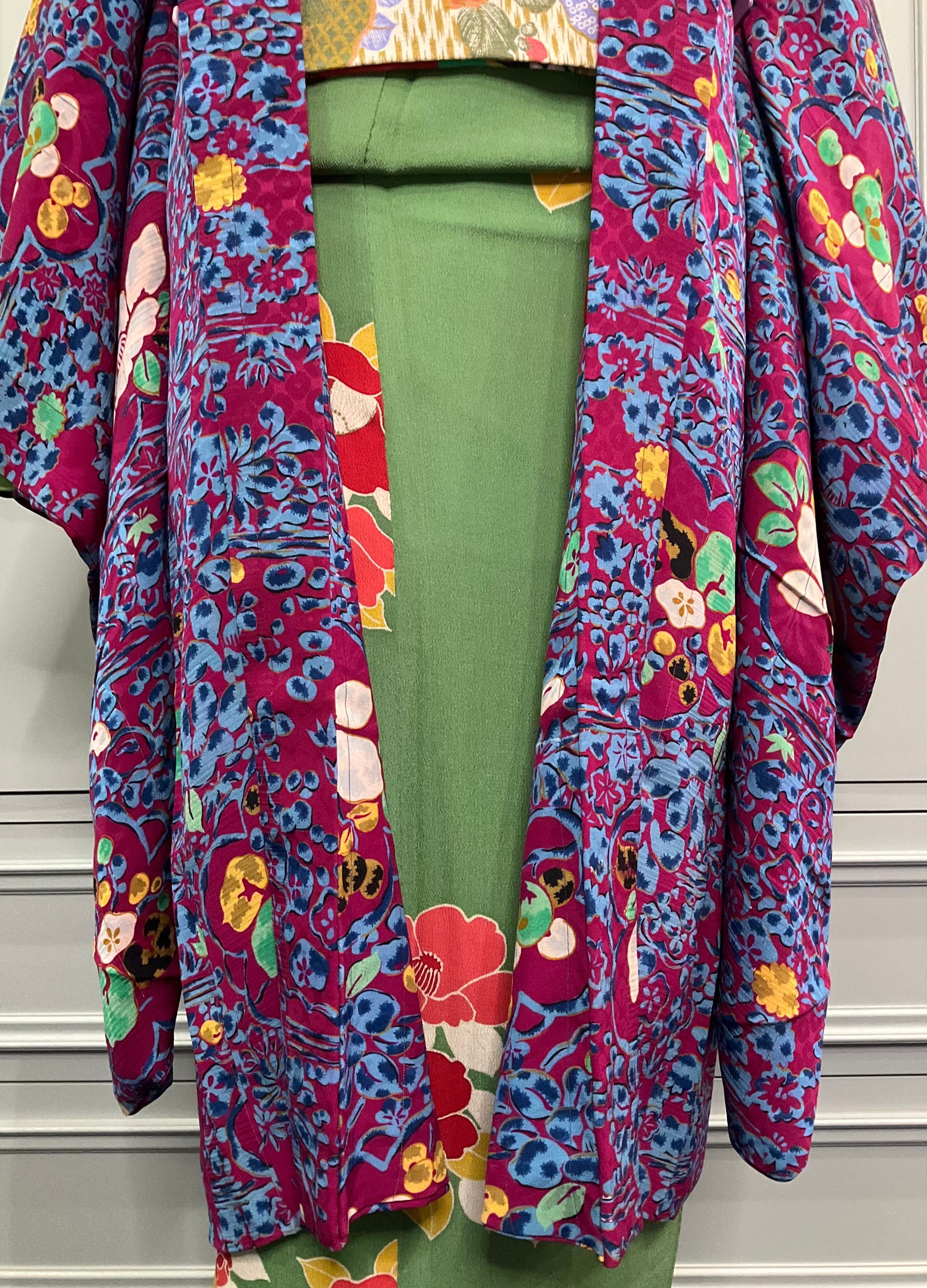 赤紫 水鏡 ゆらゆら揺れる*アンティーク長羽織 0597