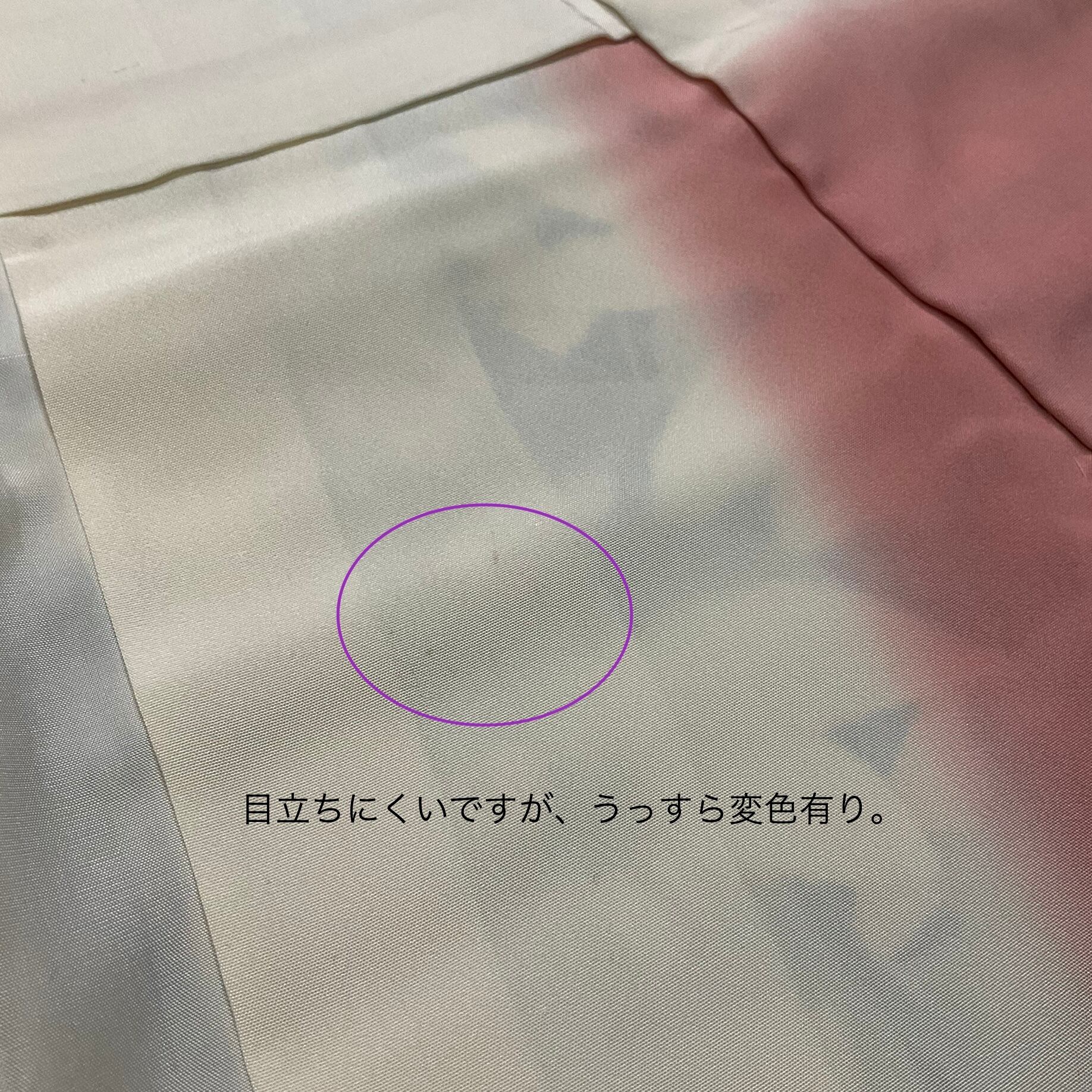 しつけ付きの未使用品ですが、八掛部分に数ヶ所、目立ちにくいですがうっすら変色・くすみ有り。
