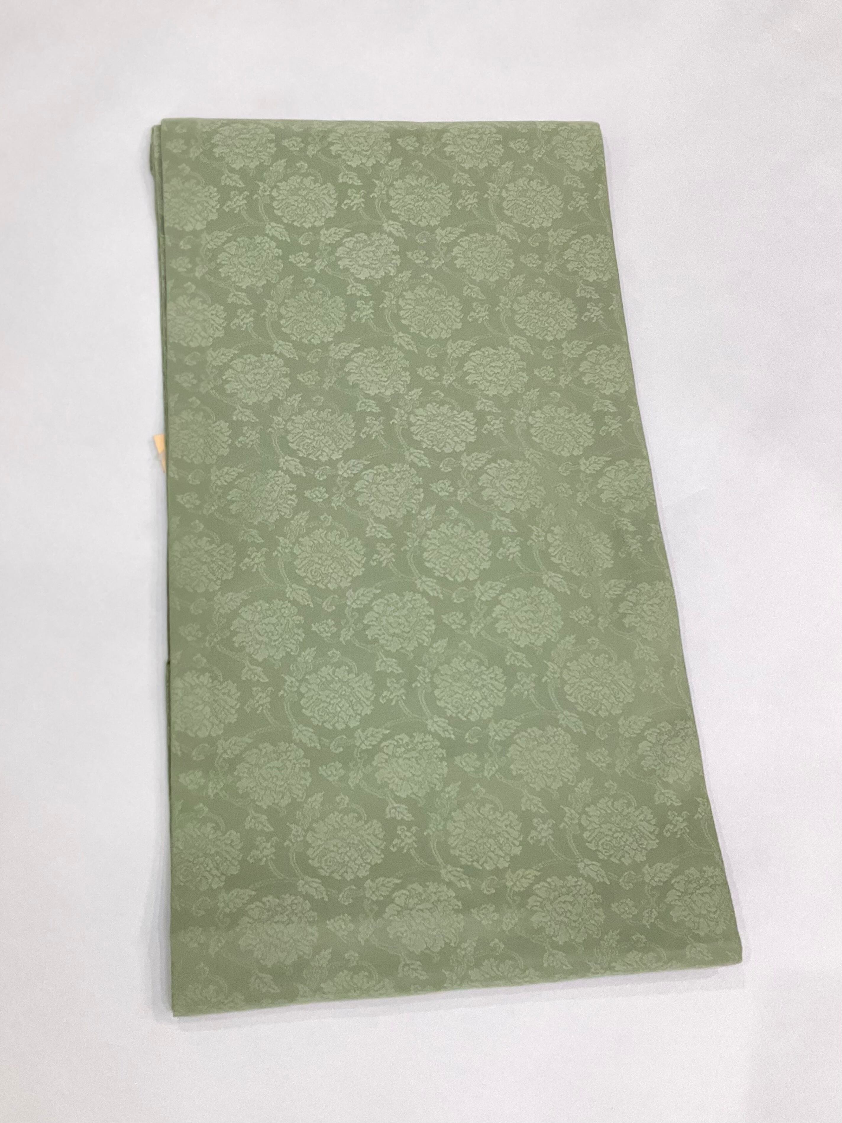 グリーン系のお色に、花の地模様が素敵な、名古屋帯です♪
