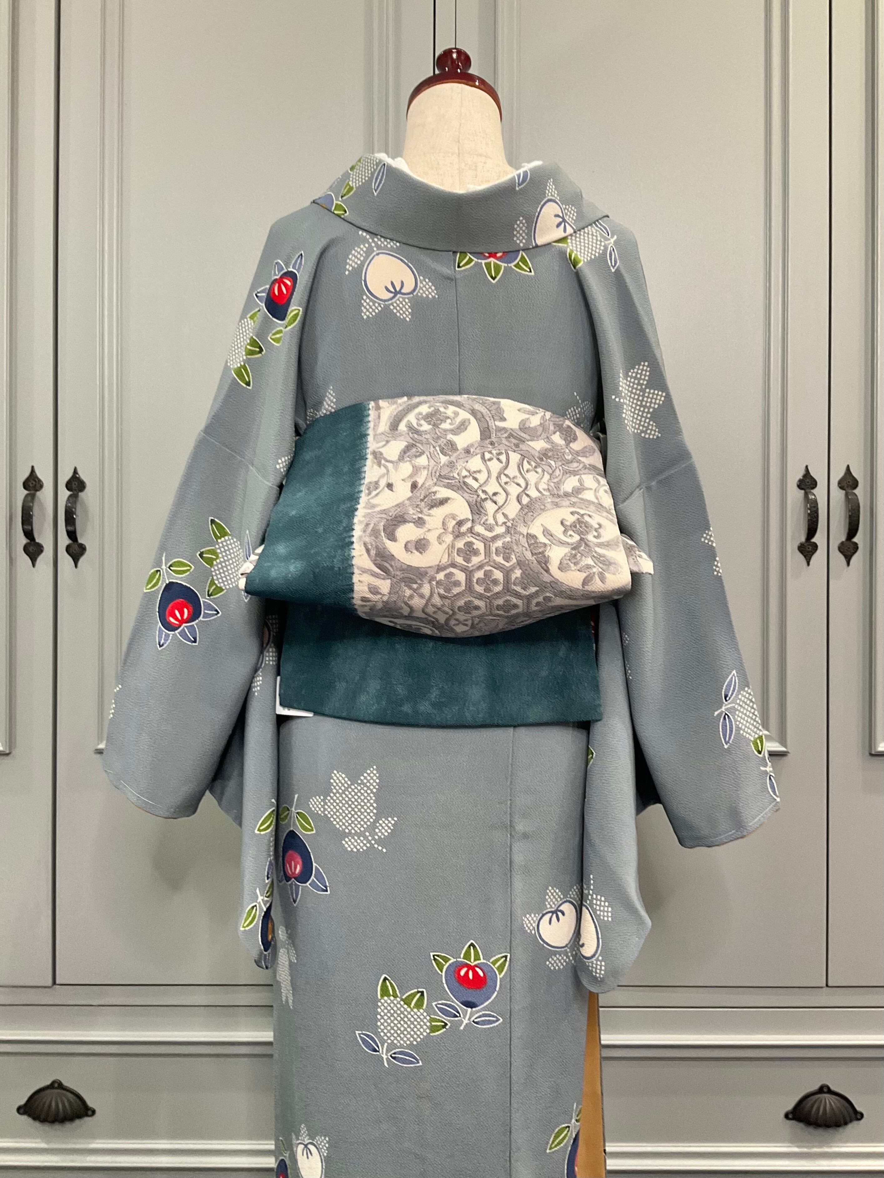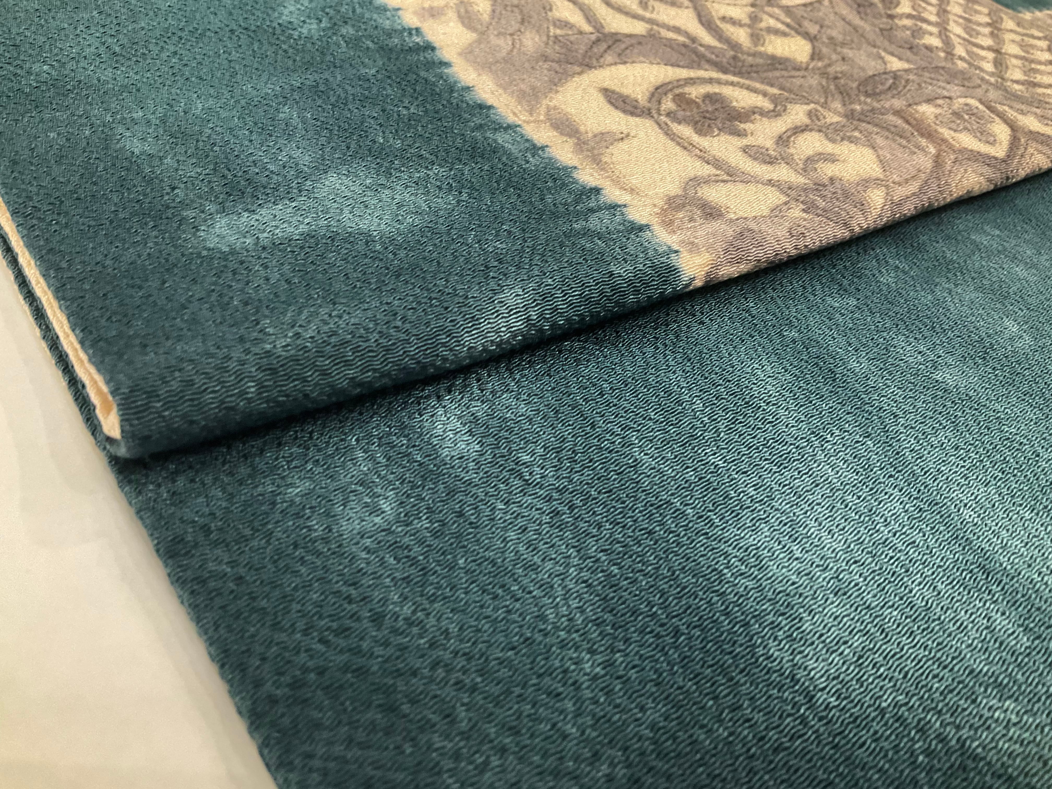 サンドリヨン・グリーン×サークル・オブ・フラワーワールド*リサイクル名古屋帯 0632