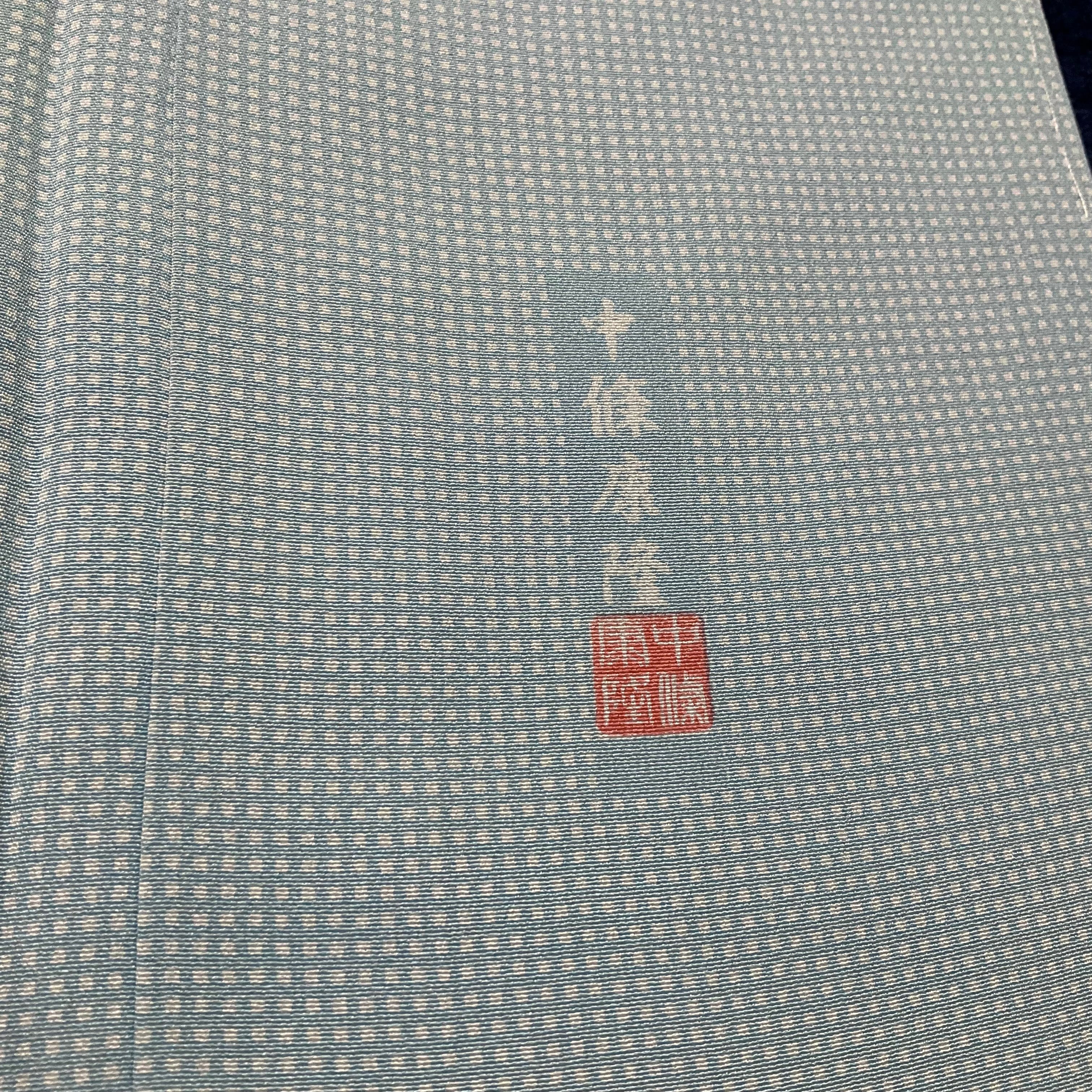 淡いブルーの地色の背紋入り、江戸小紋〈角通し〉キモノです♪