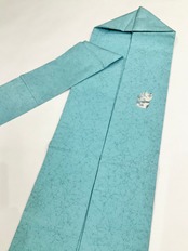 ターコイズ系のブルーの地色に、ゾウがデザインされた、リサイクル名古屋帯です♪