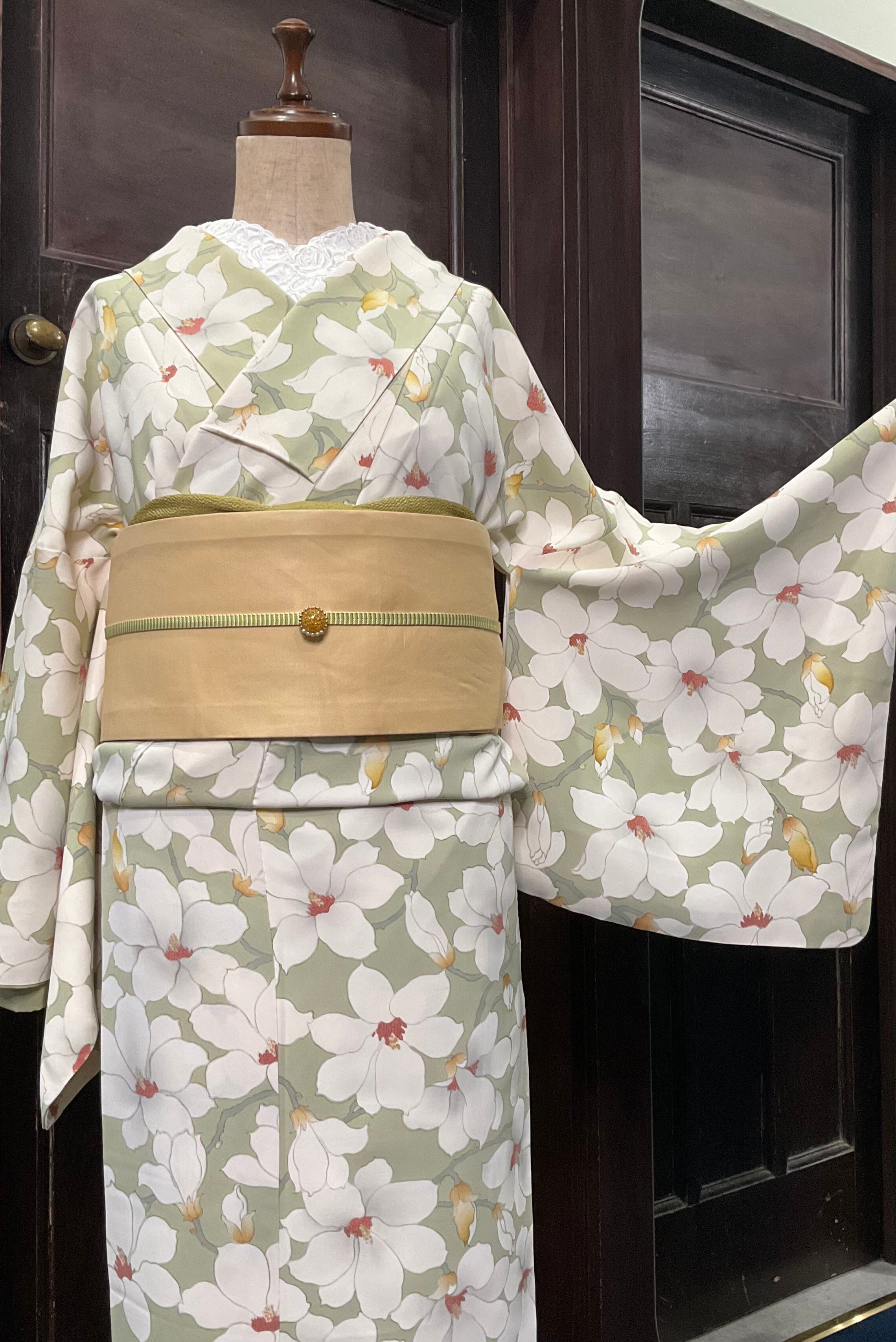 また、たくさんの木蓮の間から見えるグリーン系の地色が、絶妙なスモーキーカラーなんですよね✨
