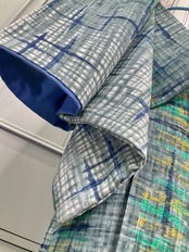 地色にはブルーがかったグレーとホワイト、そしてネイビーやグリーン、イエローがポイントになっていて、キャンバスに描かれたような、ツイードのファブリックのような、どこか"洋"の雰囲気を漂わせているところがとてもオシャレですね✨