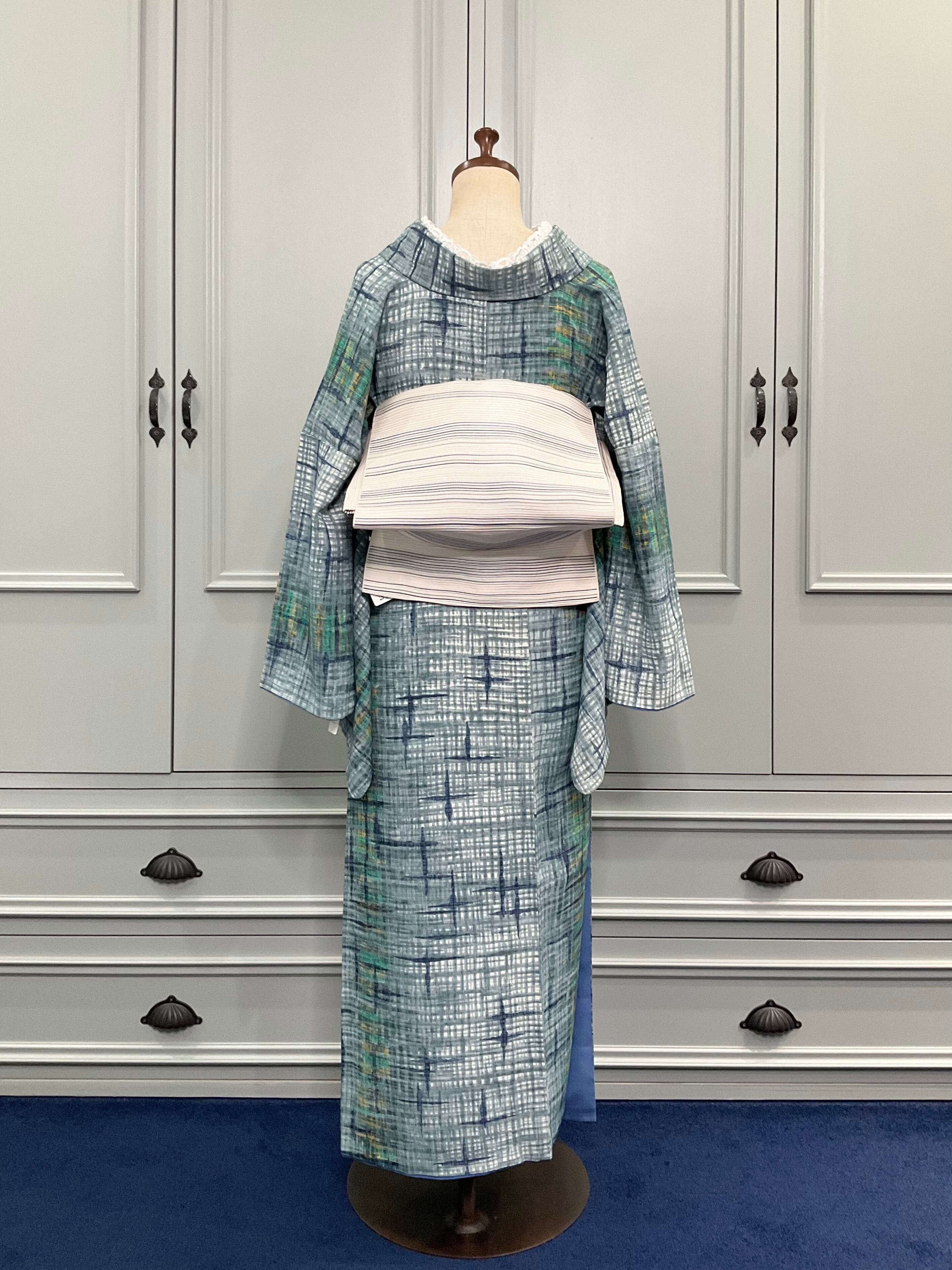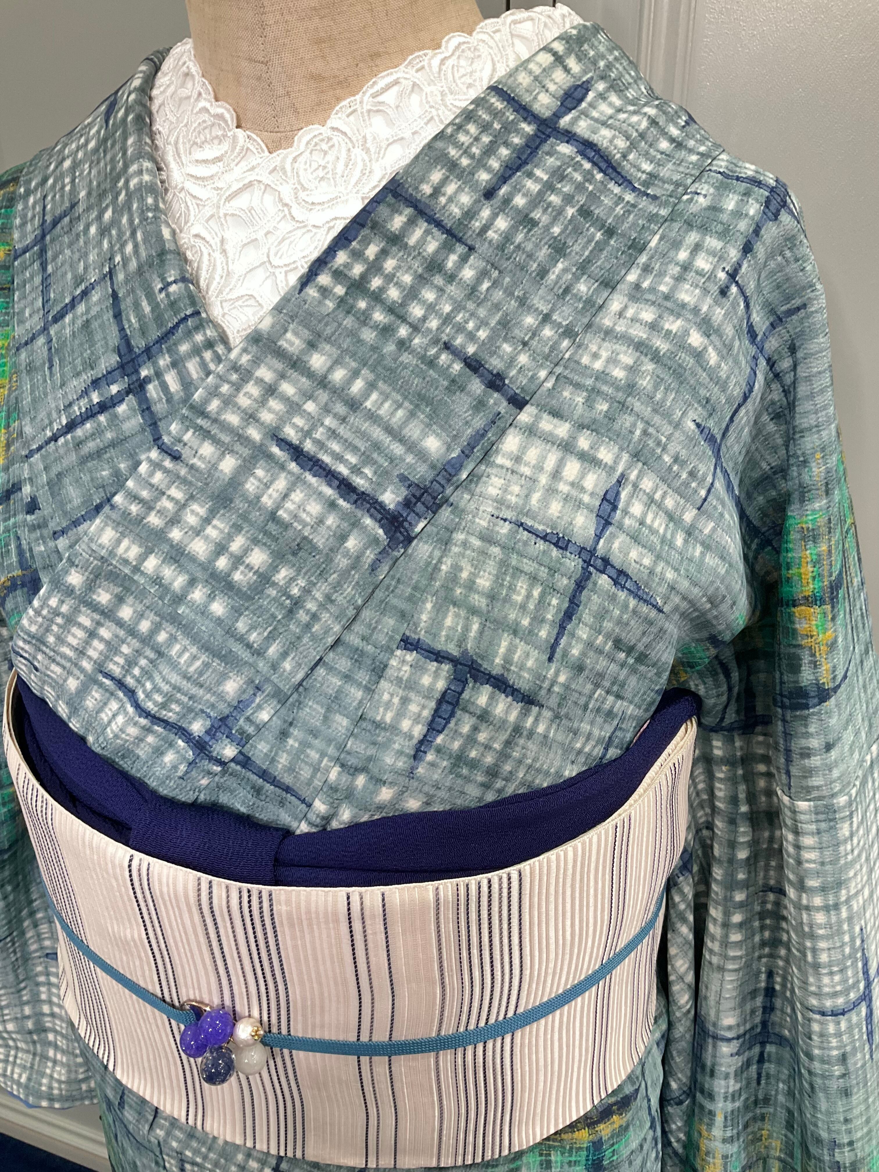 春は立ち襟ブラウスを、秋以降はハイネックのニットなどを襦袢の代わりにして、洋服mixコーデにしていただいても、オシャレに着こなしていただけるのではないでしょうか?^^