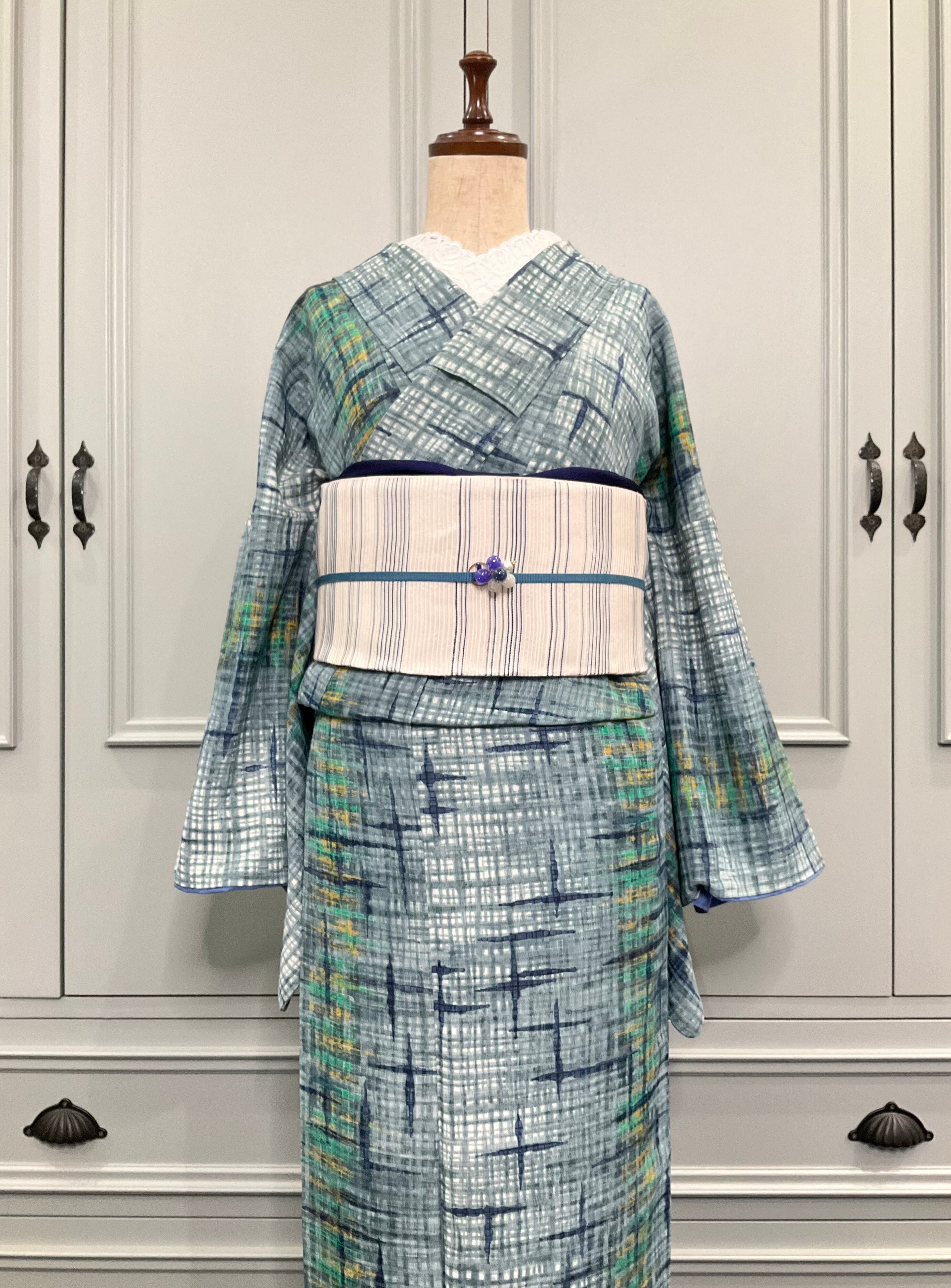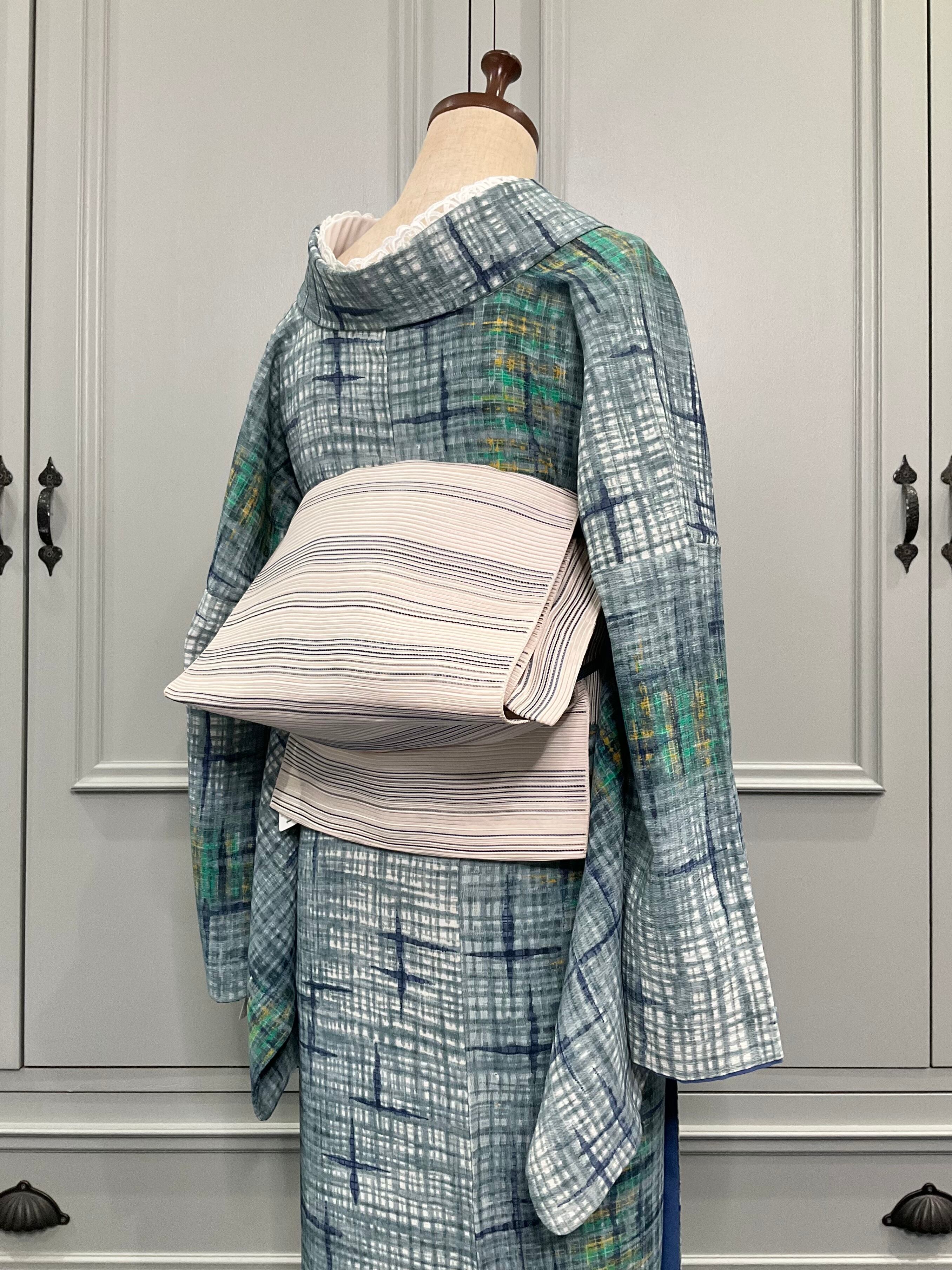 ボーダーの太さがかなり細めで、スッキリとしたデザインなので、着物の柄を邪魔することなく、とても合わせやすいところもポイントです^^