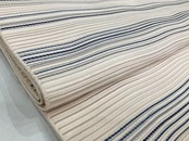 あたたかみのあるアイボリー系の地色に、ブルーやネイビー、淡いグレーの細いラインが入ったボーダー柄が素敵ですよね✨
