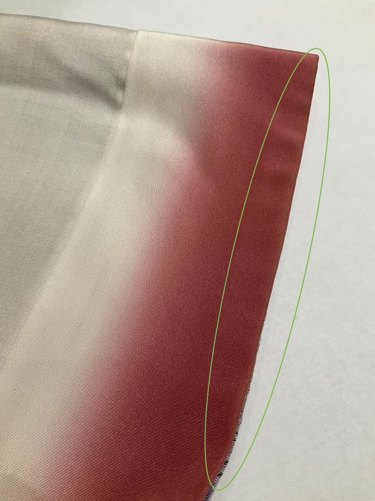 衿に、目立ちにくいですがうっすらくすみ有り。(折ると隠れるあたりかと思います。)