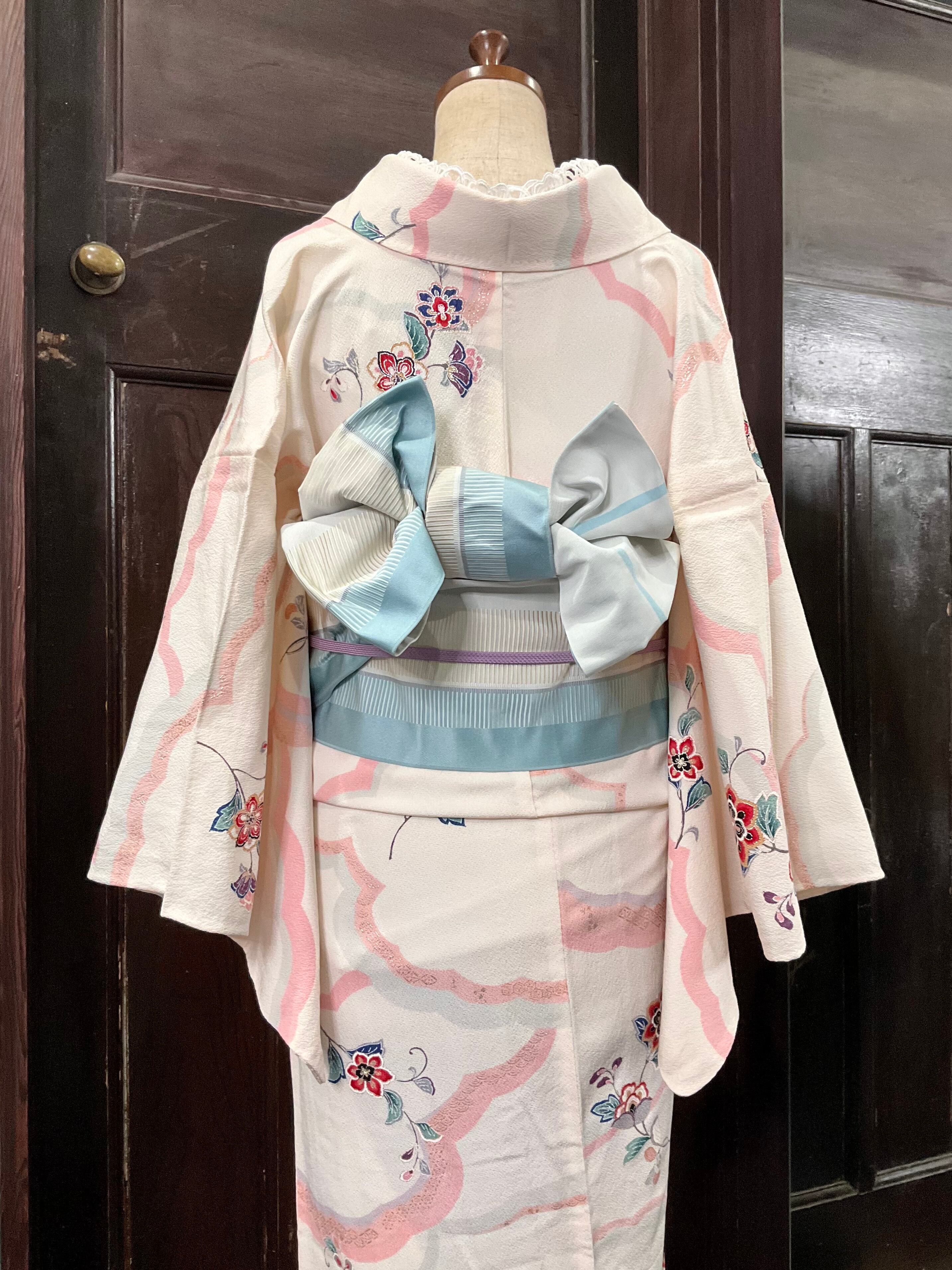 単衣にピッタリの涼し気なホワイト系の地色に、雲のようなデザインが綺麗ですよね^^