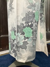 単衣*クラシカル・グリーン・ローズ*リサイクル付下げキモノ 0743