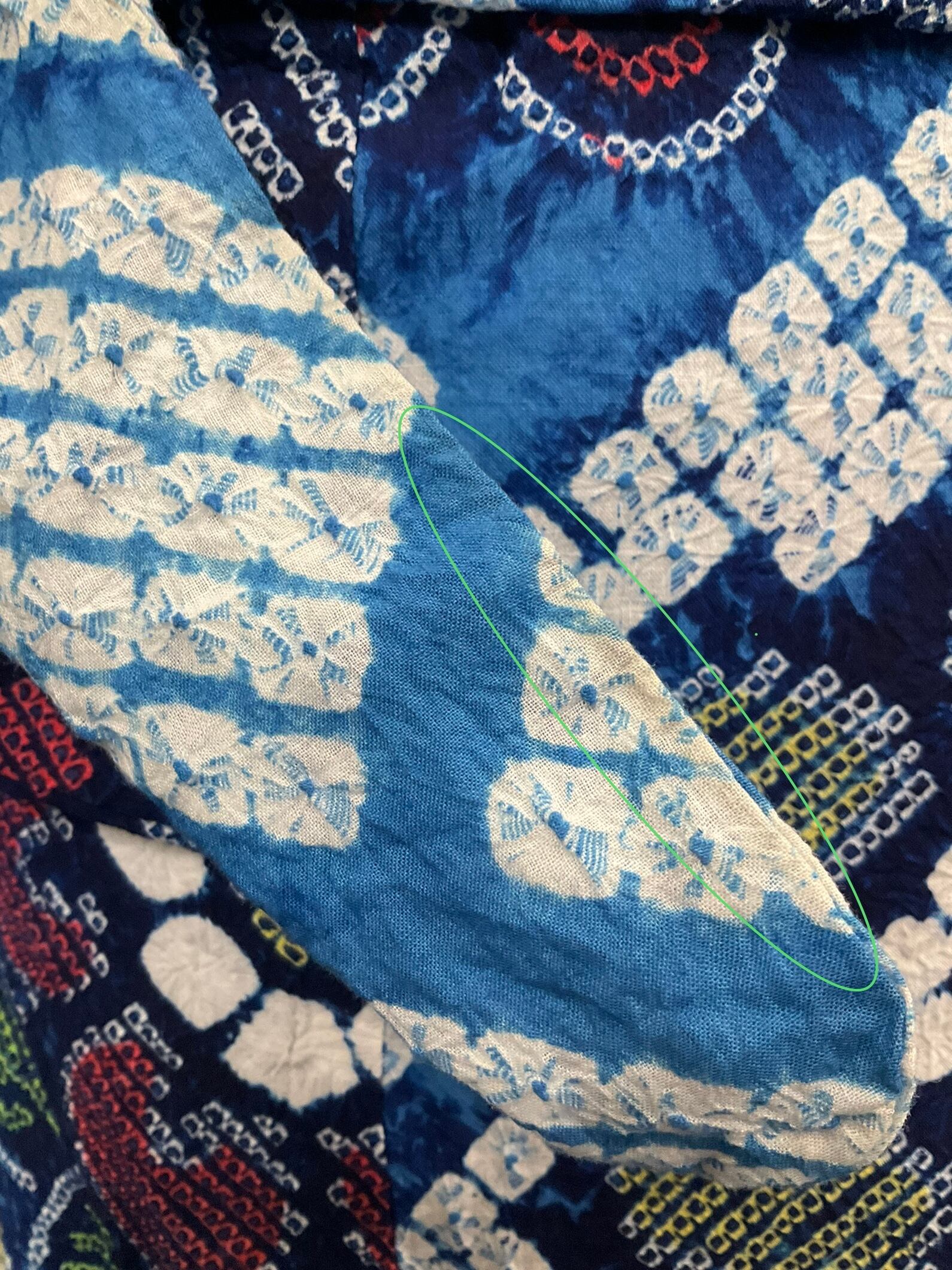 型彫り、絵刷り、糸を使った縫い絞りや括りの手作業、染色、糸抜き、などなどたくさんの技法がたくさんの人の手によって施され出来上がる、伝統工芸品です。