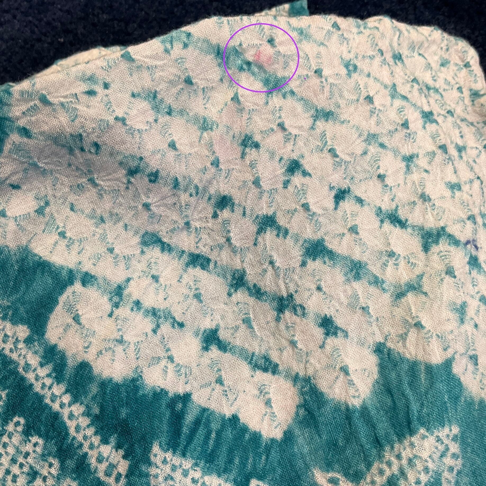 後身頃、左袖(白場)等に、うっすら赤色の染料移り有り。