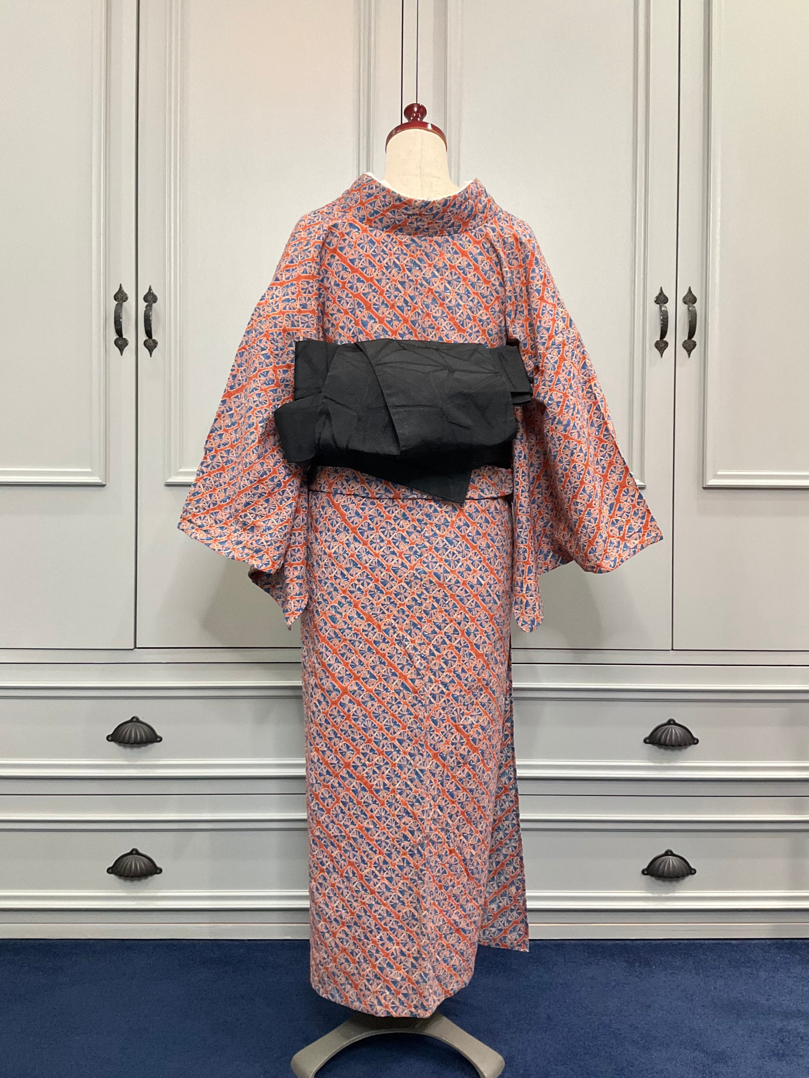 こちらはデザインが着物のようにも見えますので、夏着物や秋口まで単衣の綿着物として、長く着ていただけそうです♡