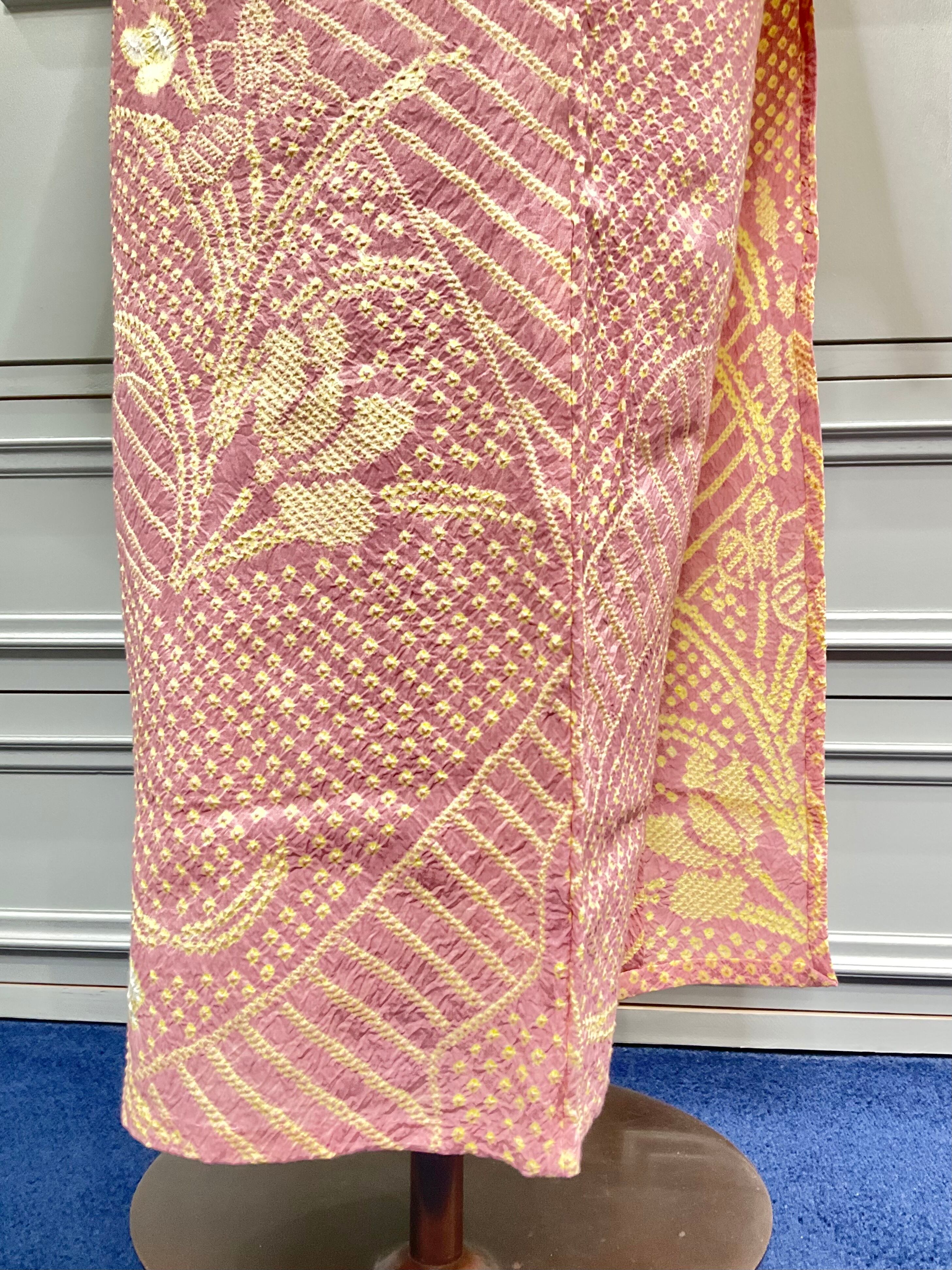 ロング*有松鳴海絞り浴衣*ミスティ・ピンク フラワー 0753