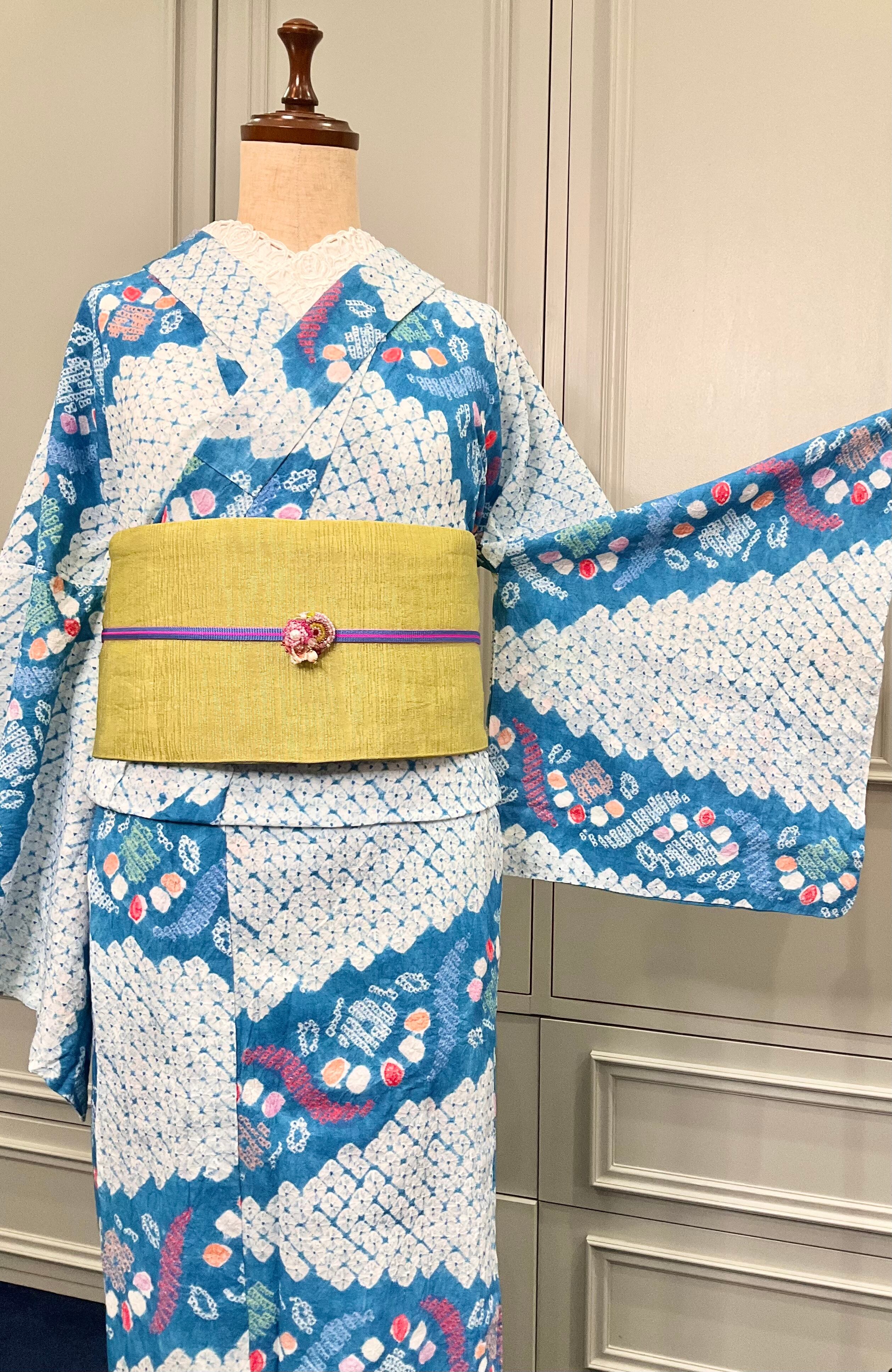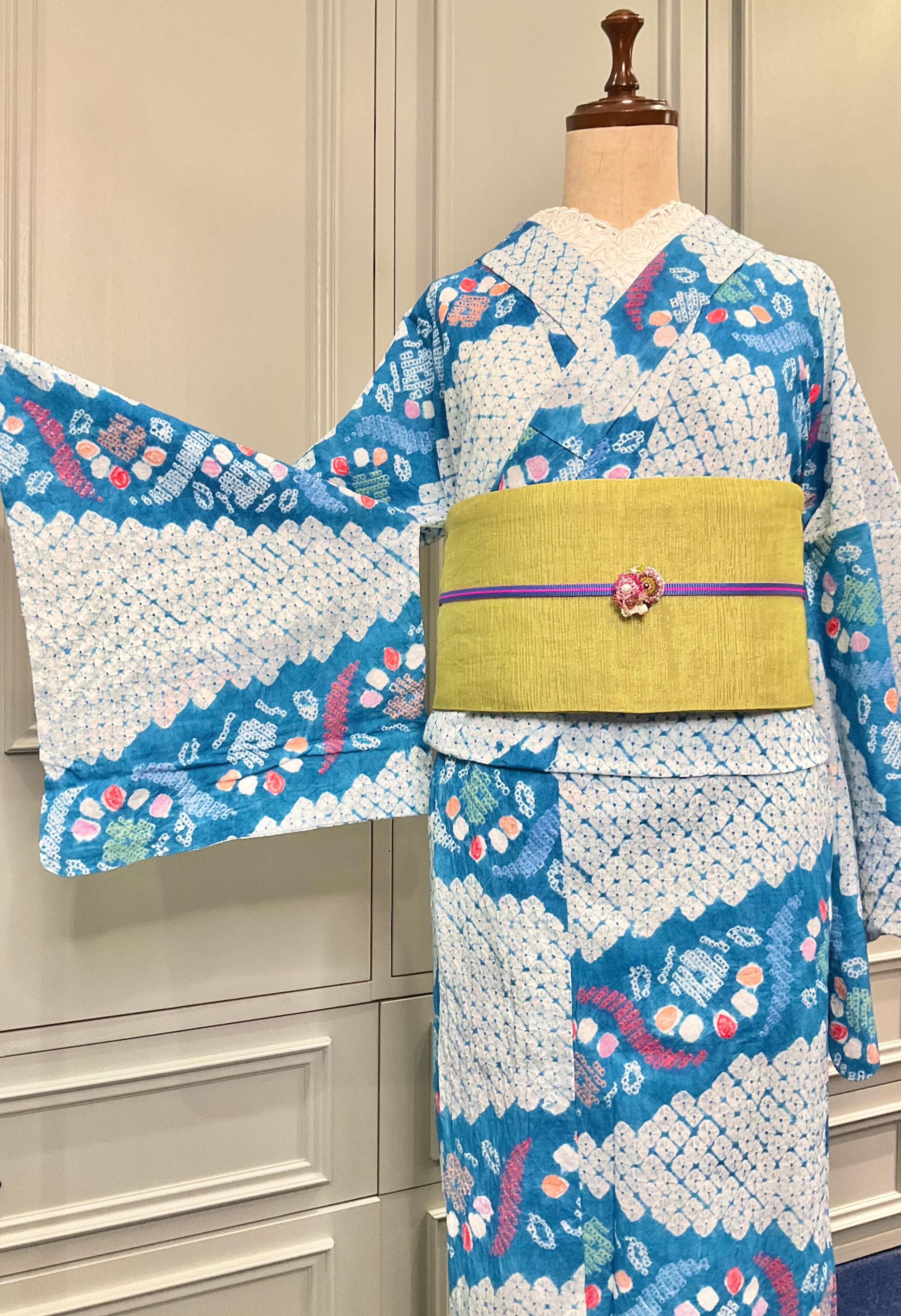ロング*有松鳴海絞り浴衣*ブルーハワイ ジェリービーンズ 0755