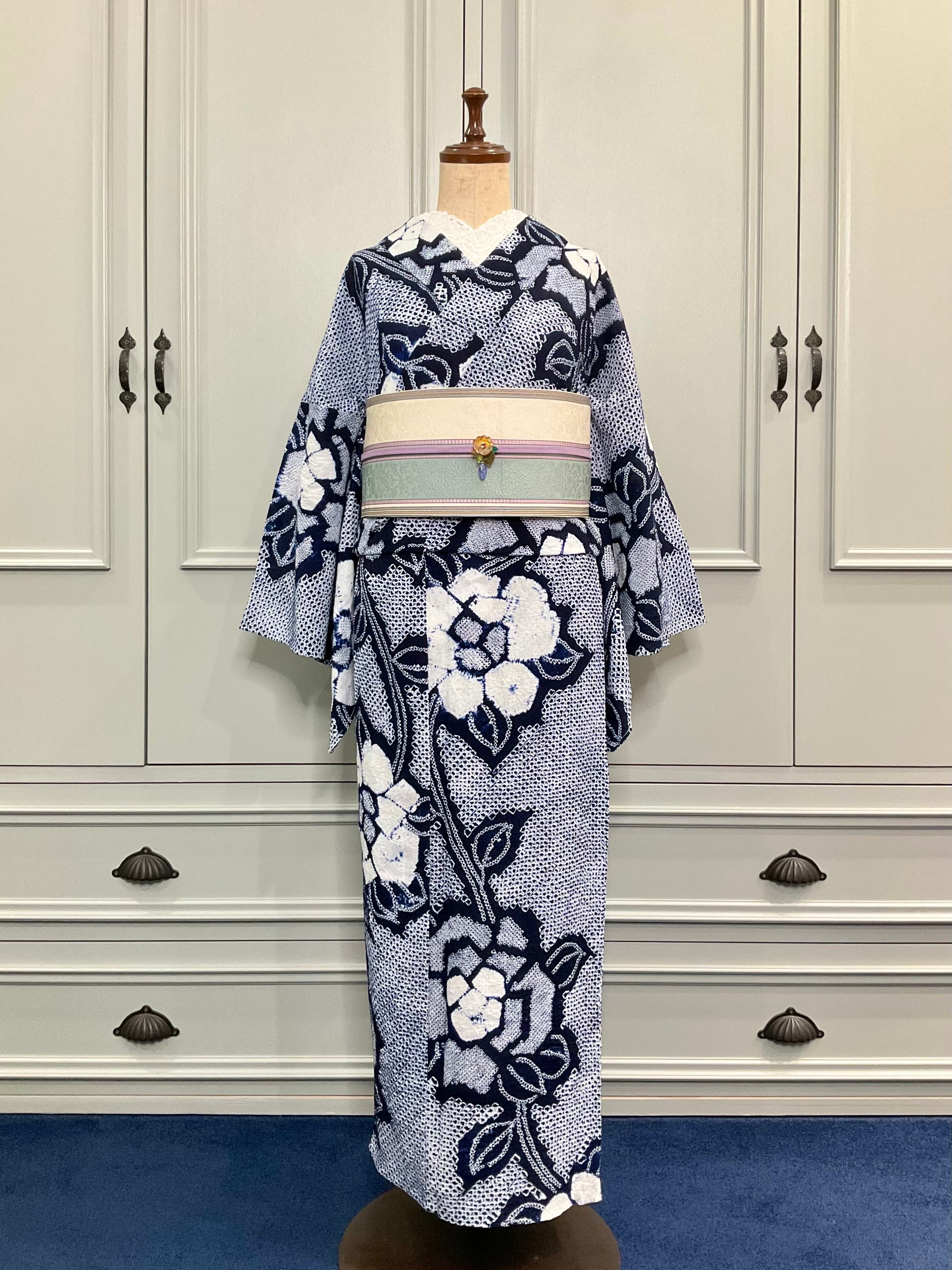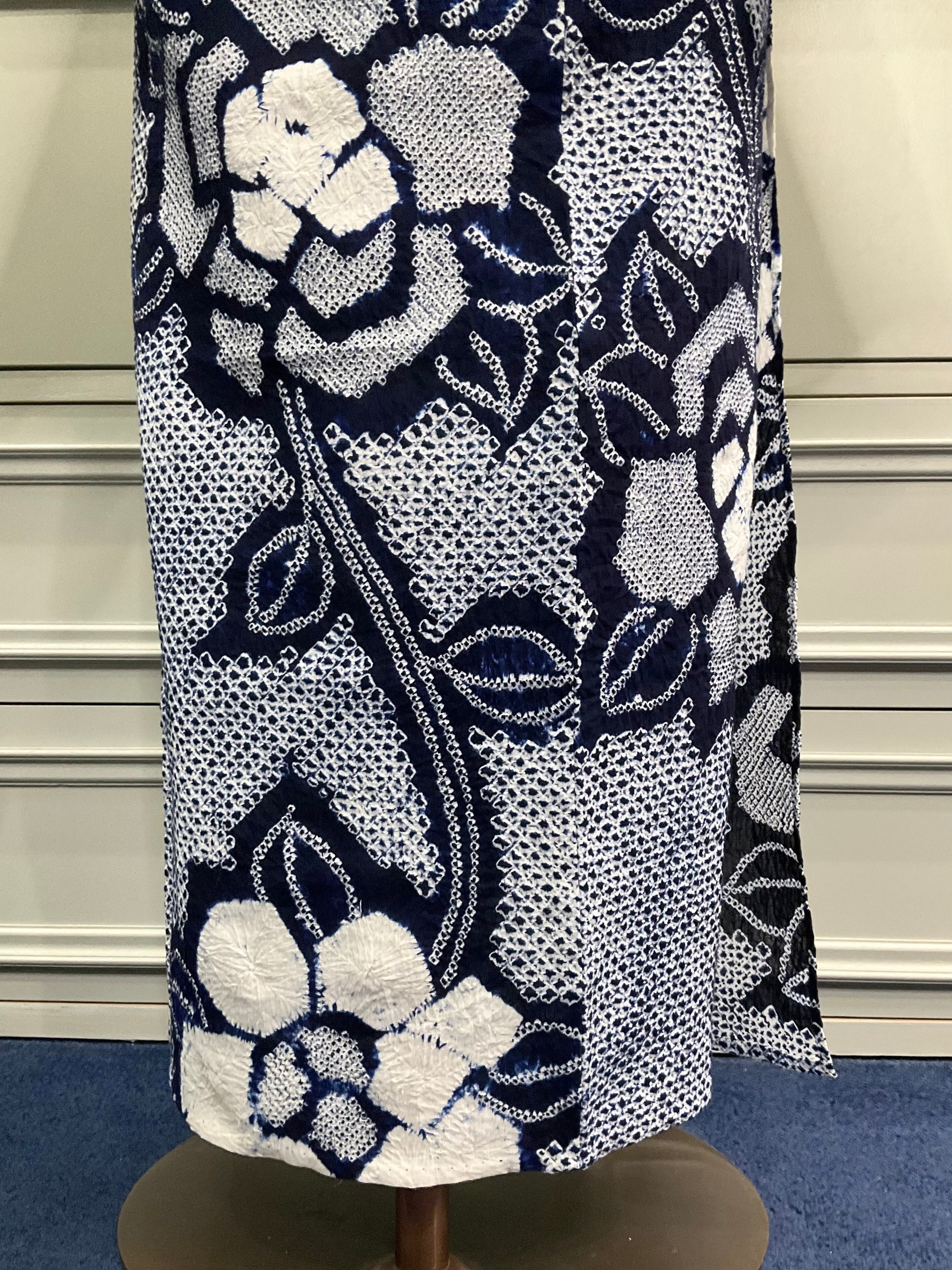 有松鳴海絞り浴衣*未使用品*インディゴ&ホワイトフラワー 0761