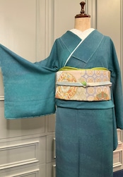 海外の綺麗な海を連想させるようなブルーグリーンが、とても綺麗なこちらのお着物。