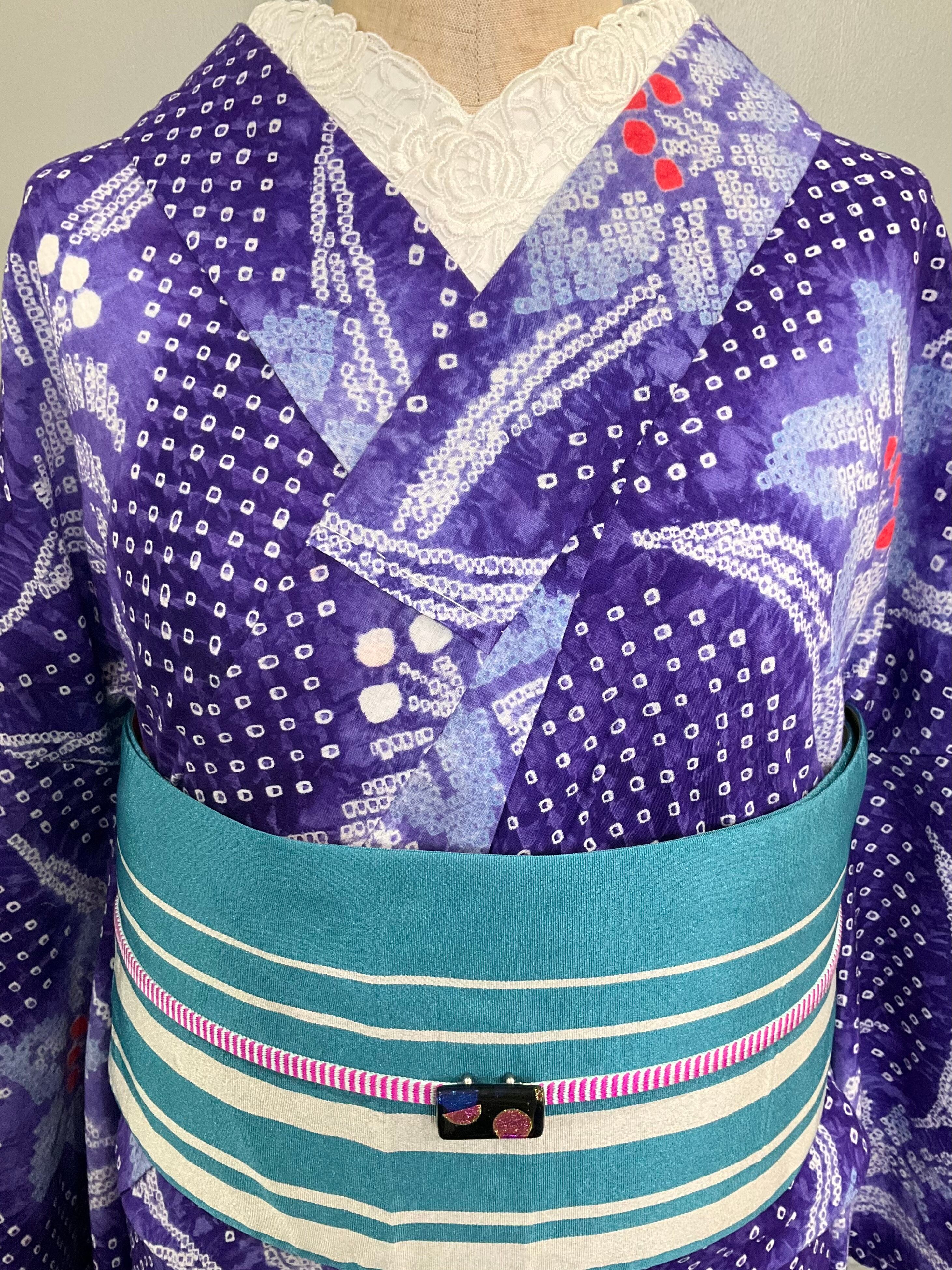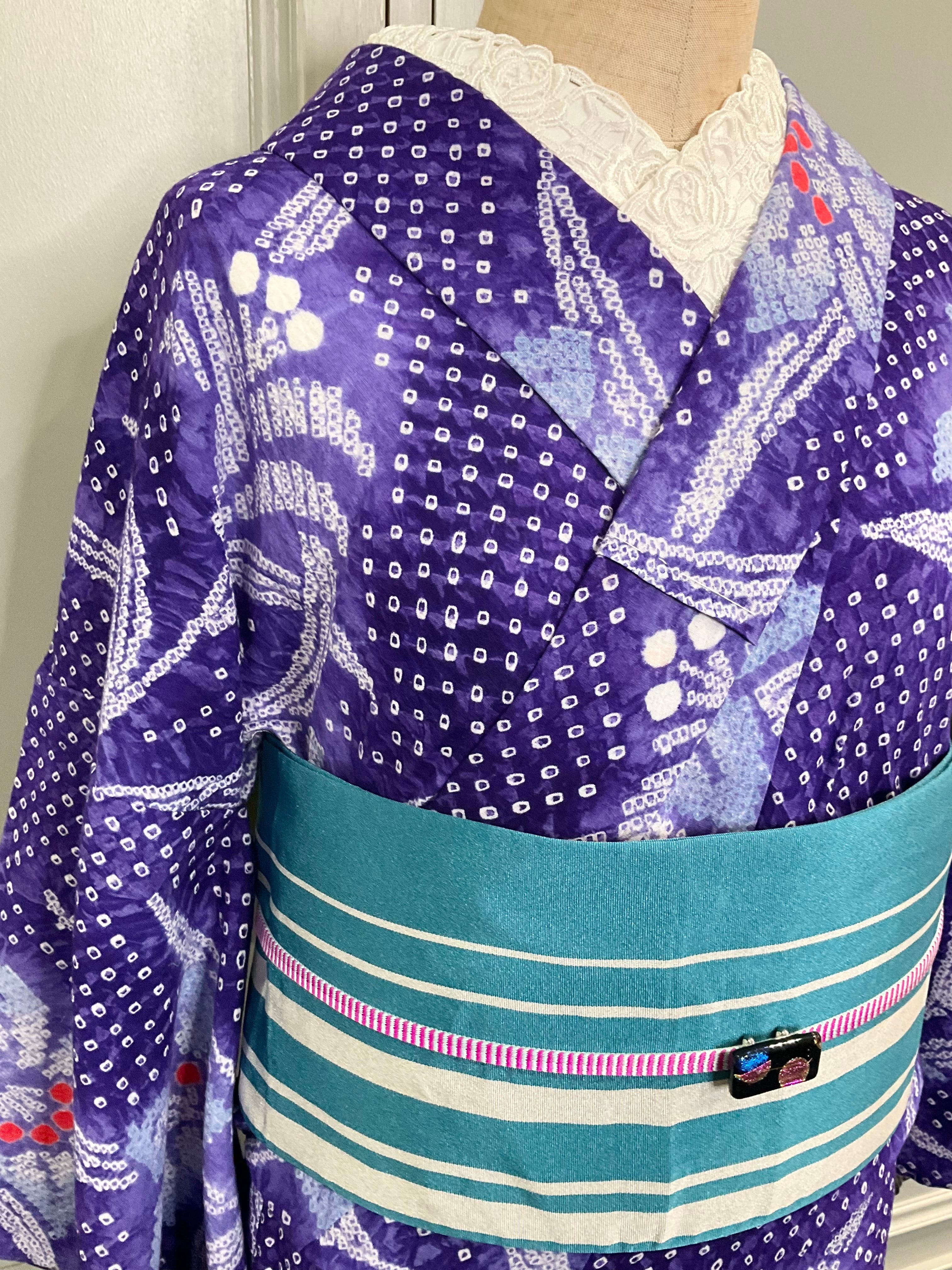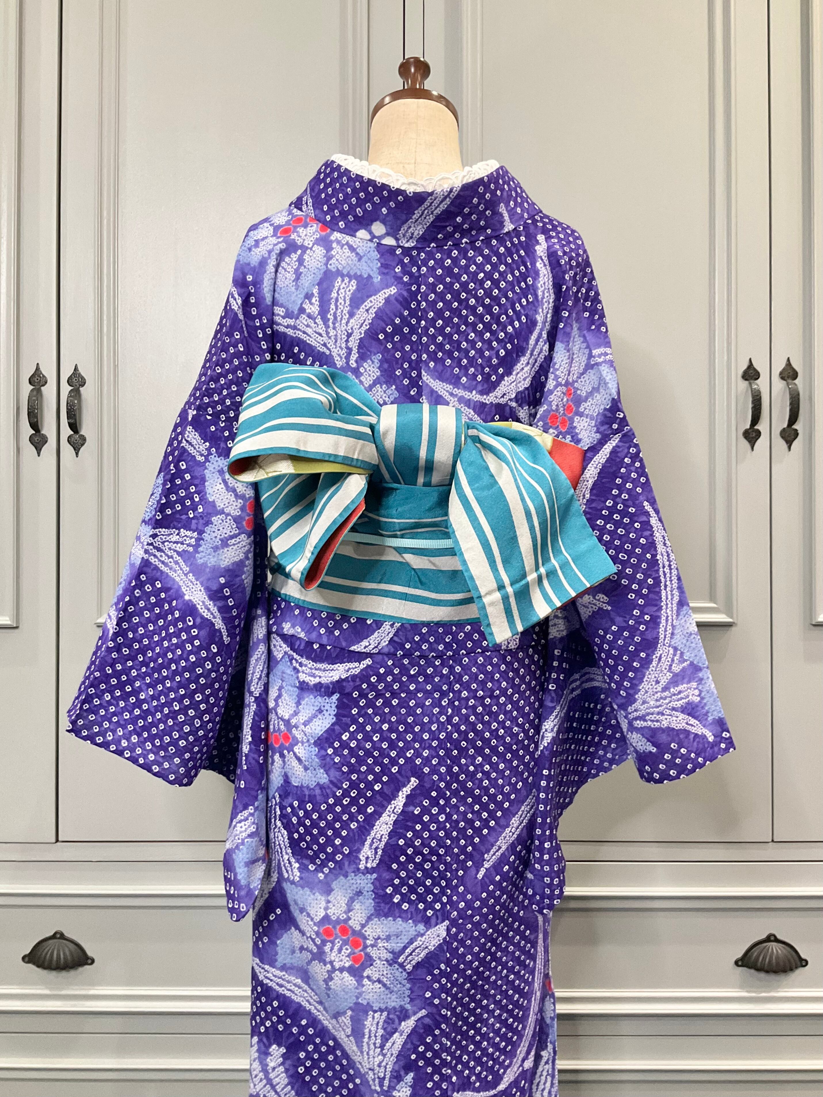 未使用品*有松鳴海絞り浴衣*グレープ・ジュース フラワー&ドット 0782