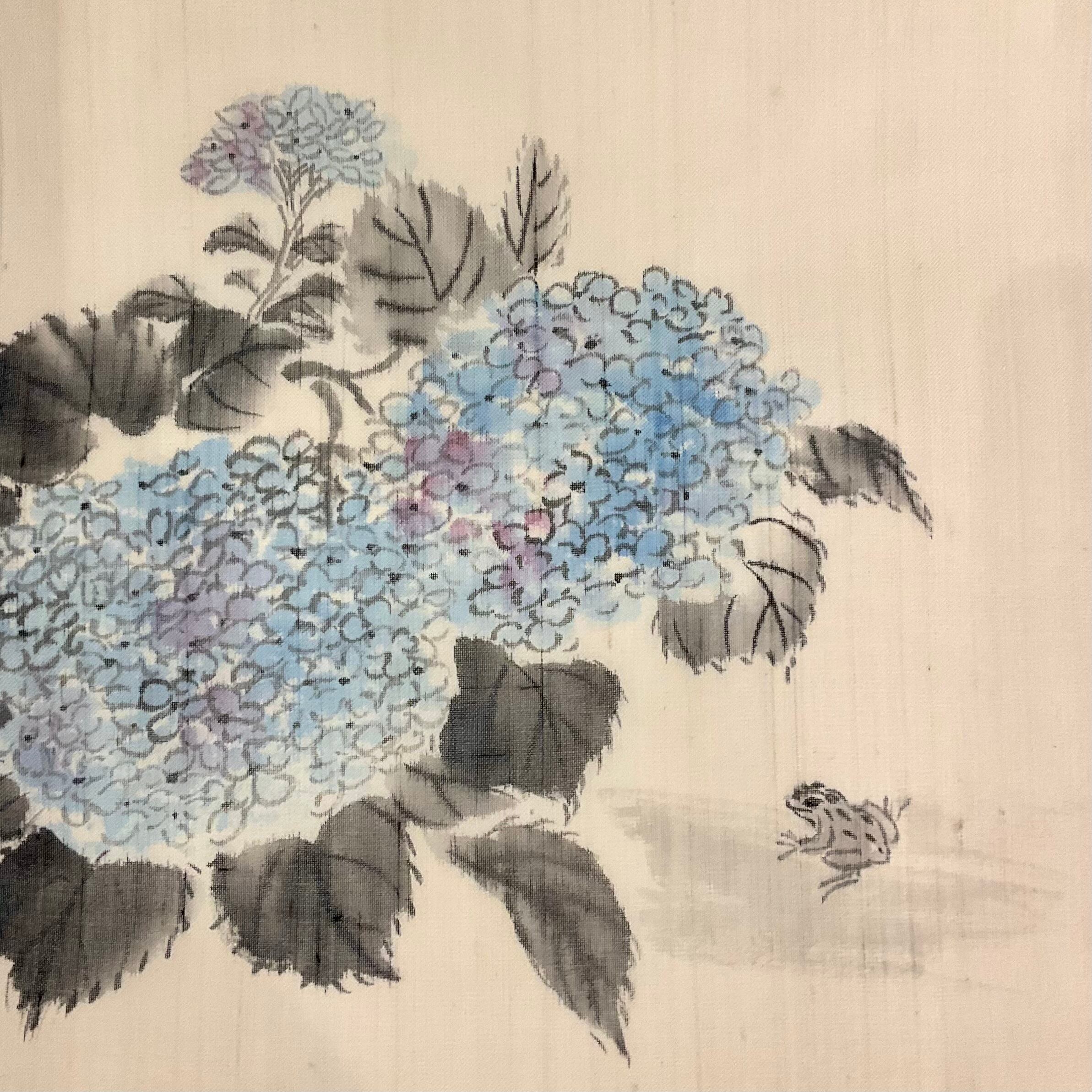 またお太鼓部分には、さり気なく雨蛙ちゃんが紫陽花を見に来たかのように描かれているところも、とても愛らしいですね^^