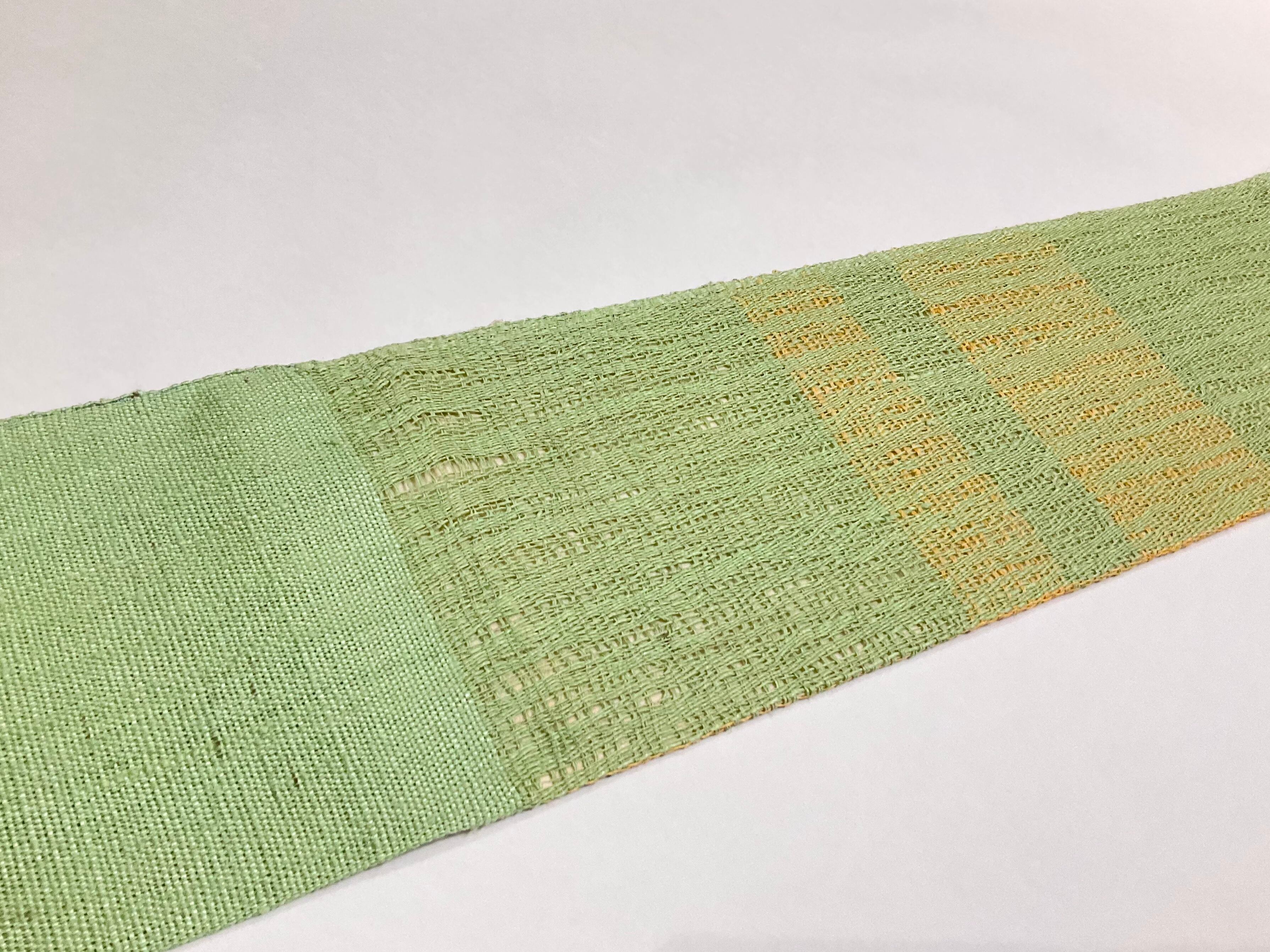 ポイントとなる柄はなく、グリーンとイエローのみの配色でデザインされていますので、柄のあるお着物と合わせても、バランス良くコーディネートしていただきやすい1本かと思います^^