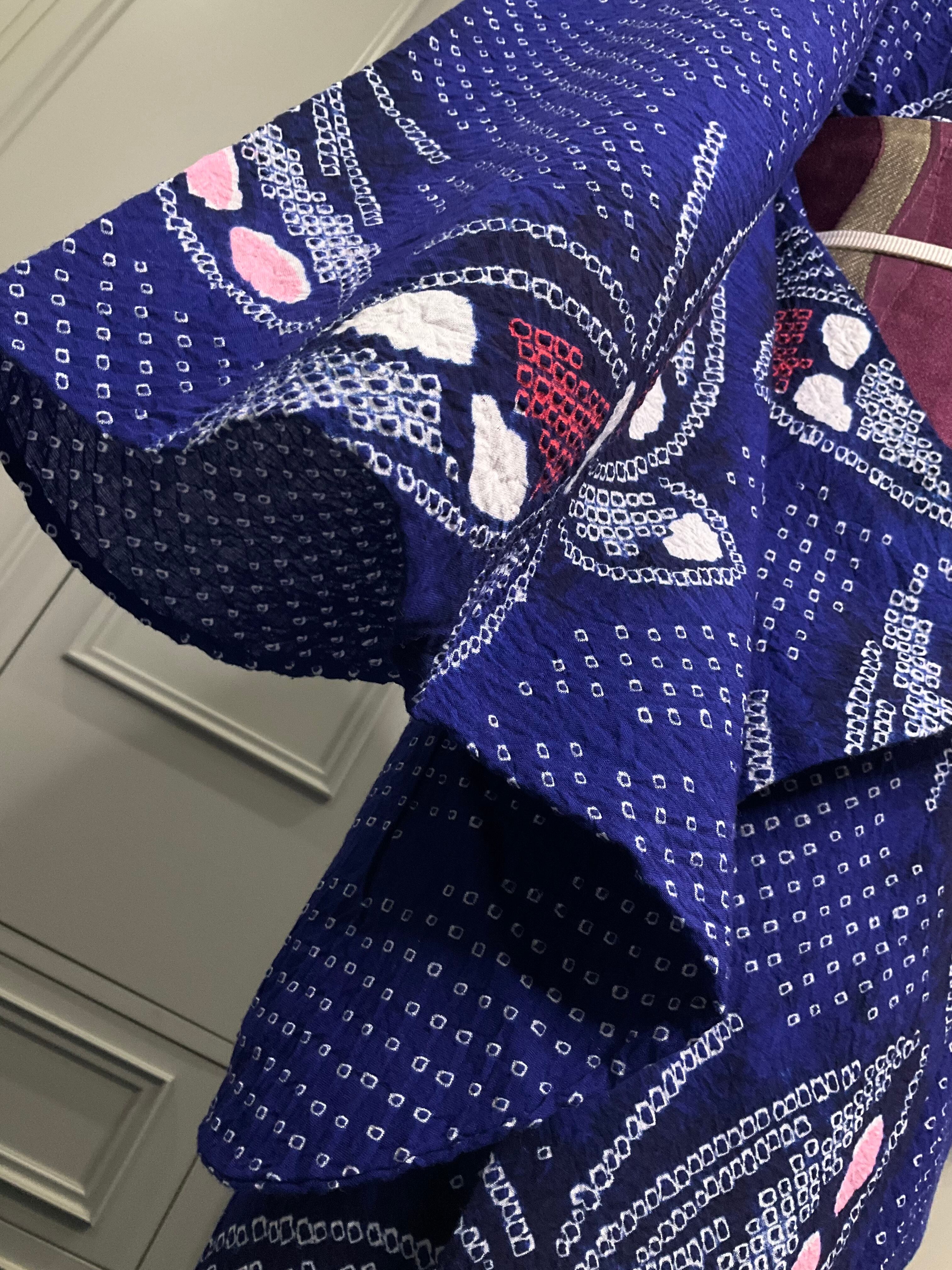 ブルー系の中でも落ち着いていますが、少しパキッとしたお色が綺麗なこちらの絞り浴衣。