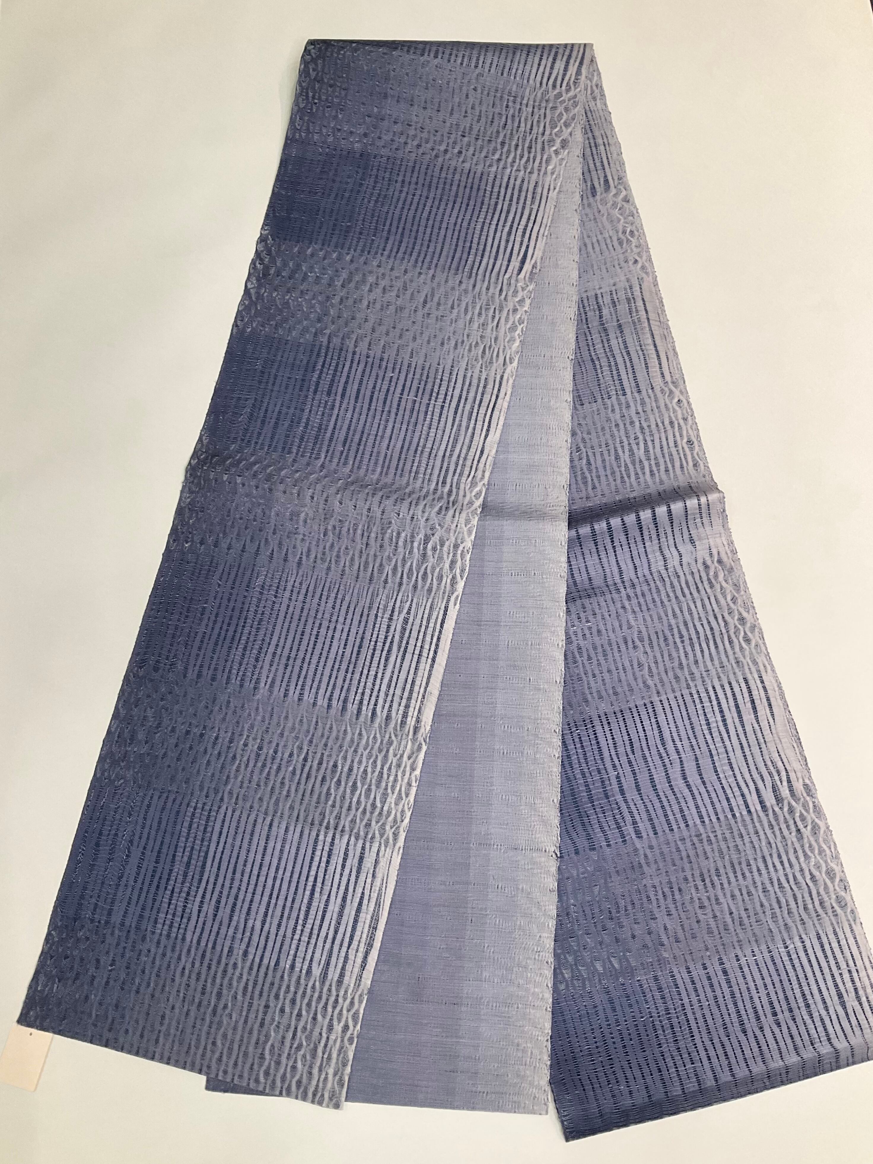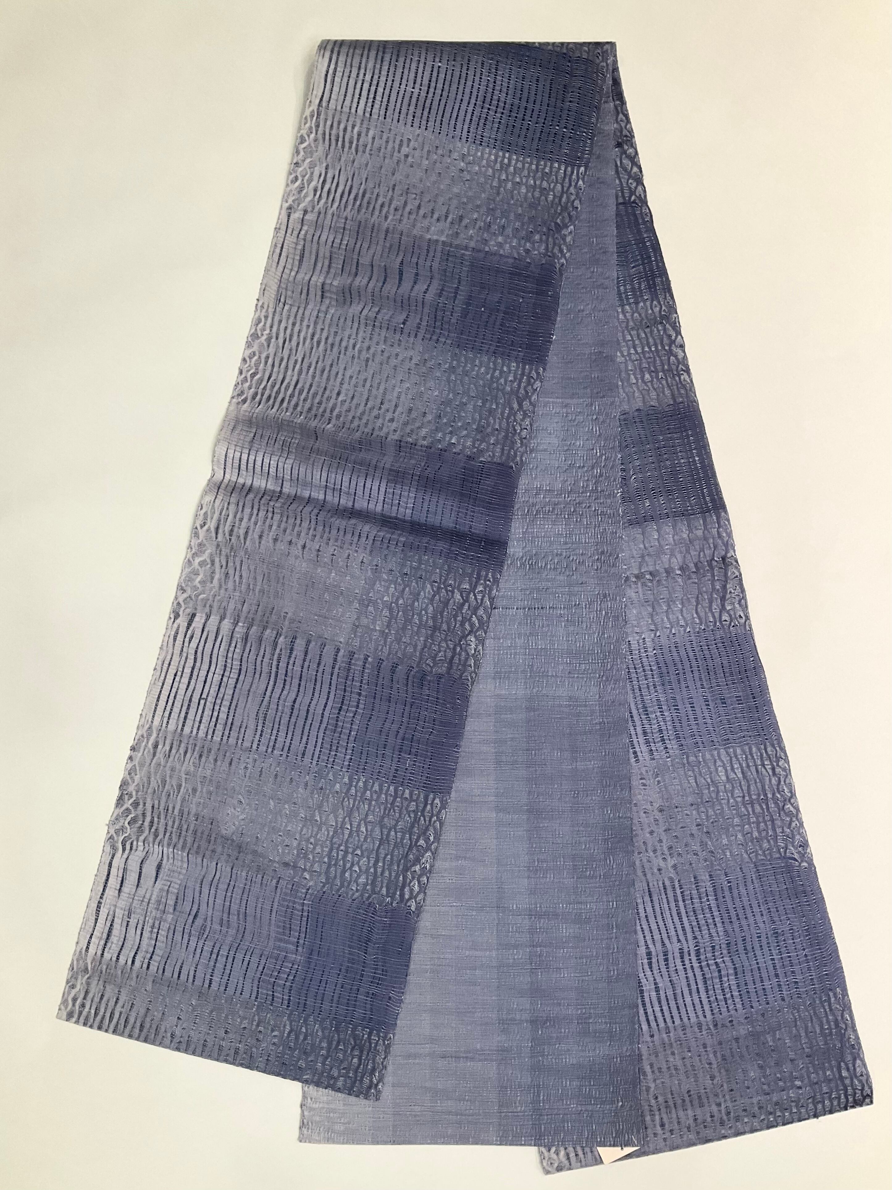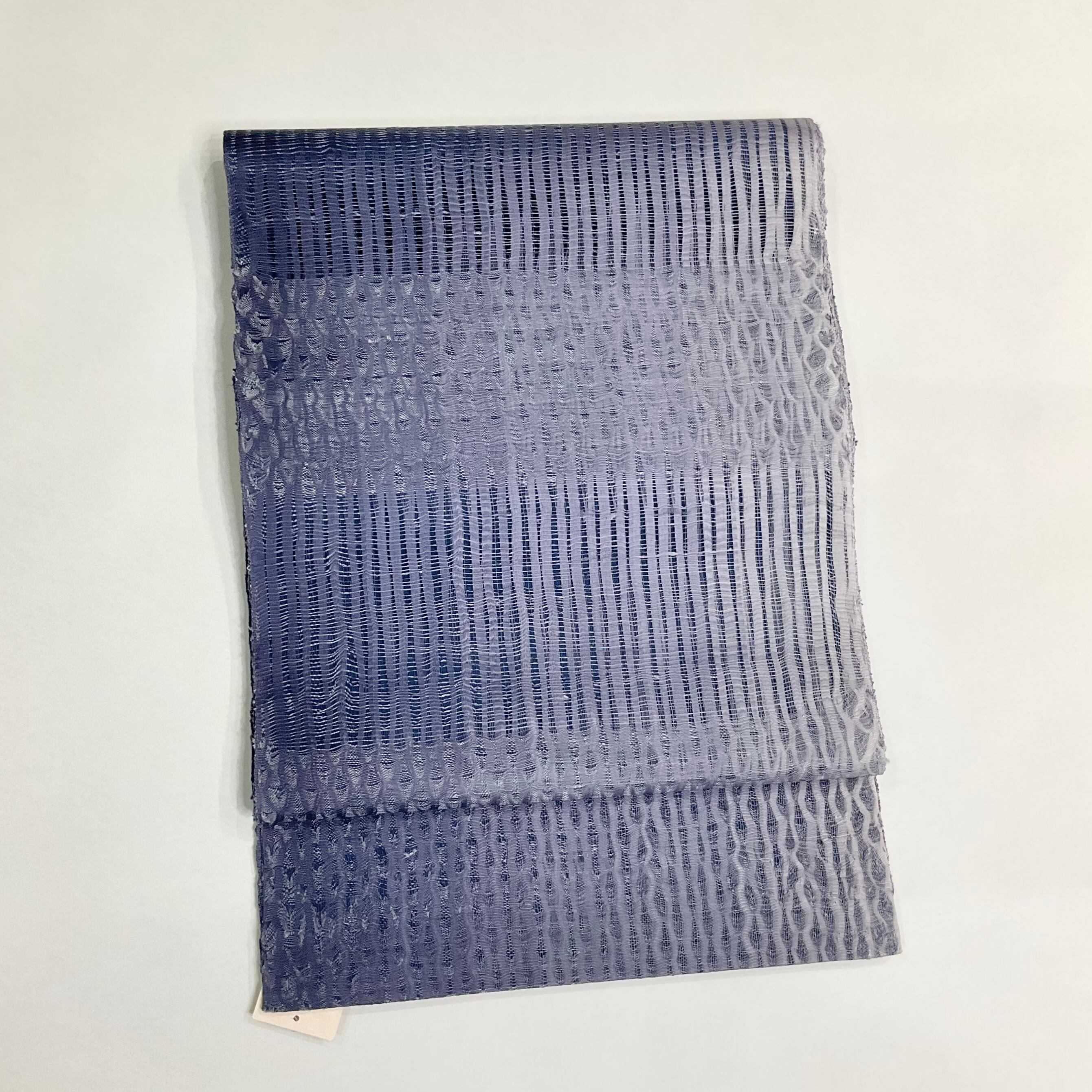 落ち着いたブルーグレー系のグラデーションが素敵な、未使用の夏の洒落袋帯です♪