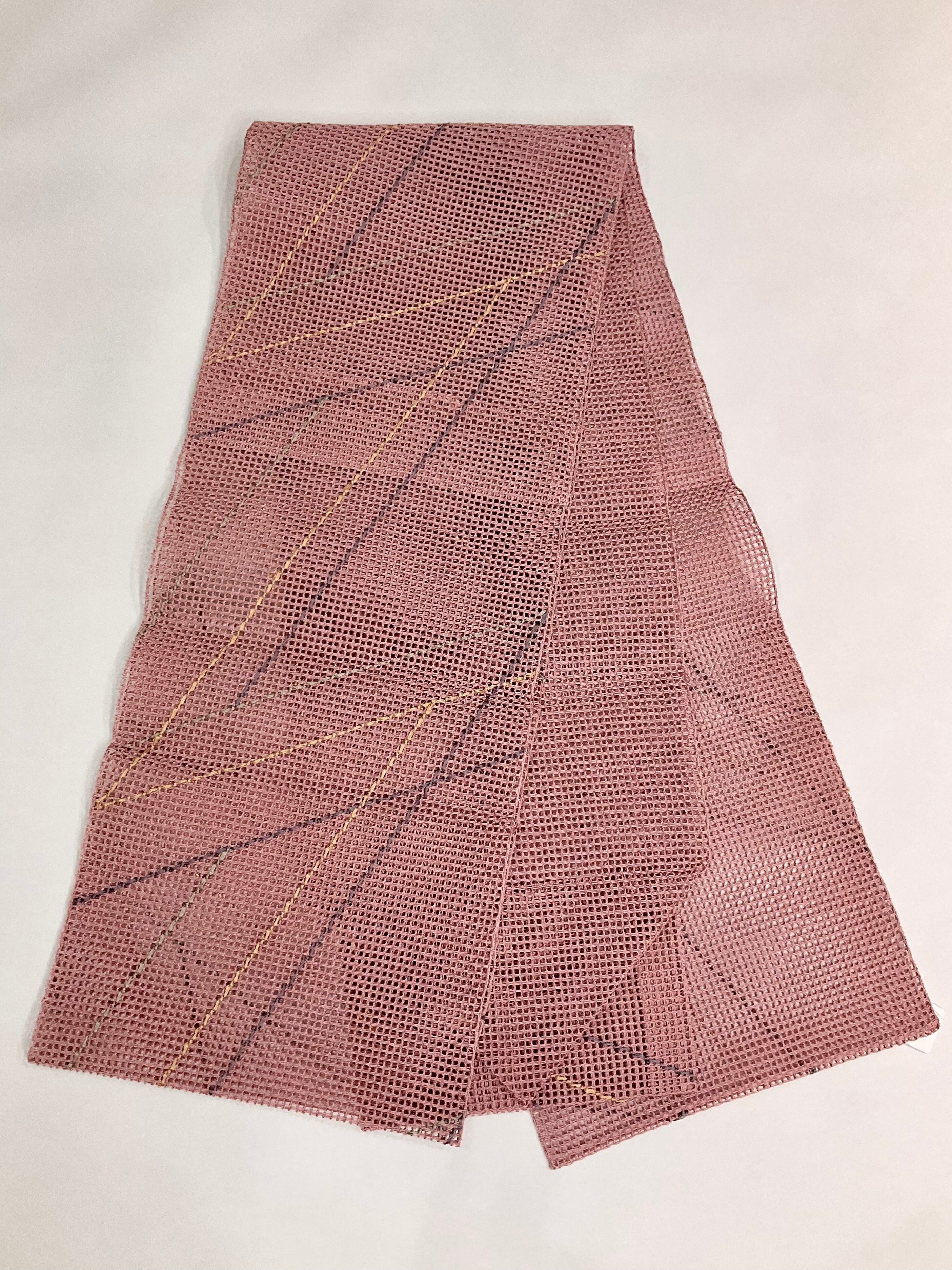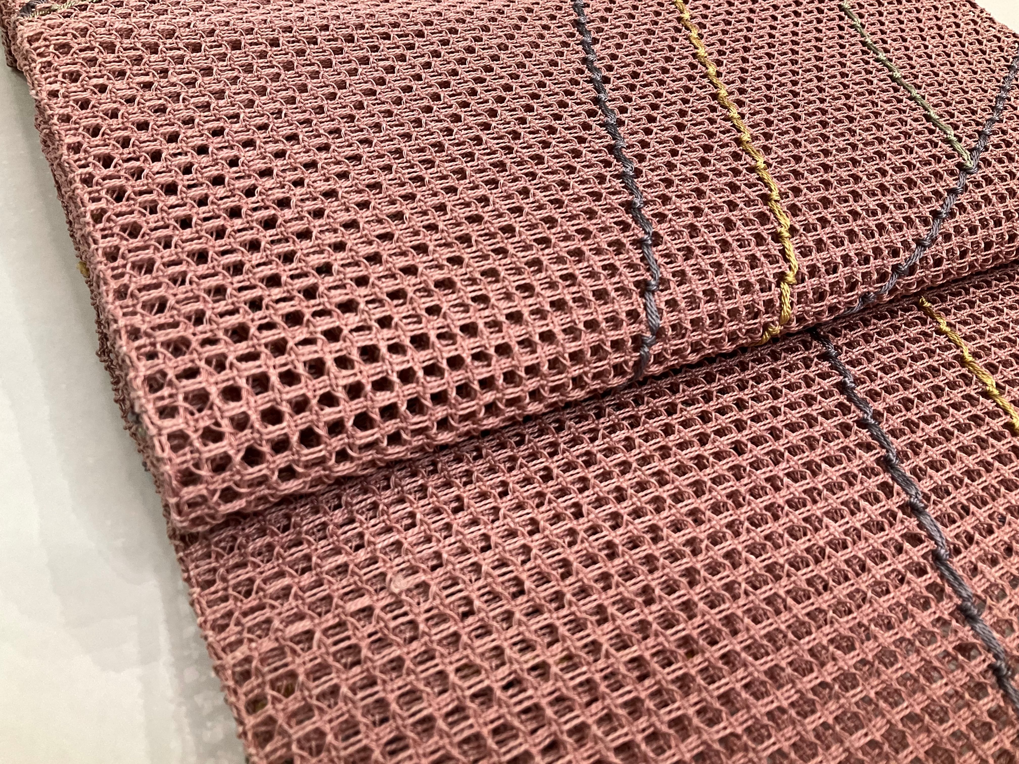 夏帯*羅*スモーキー・ローズトリプルカラー・ライン*未使用*リサイクル名古屋帯 0818