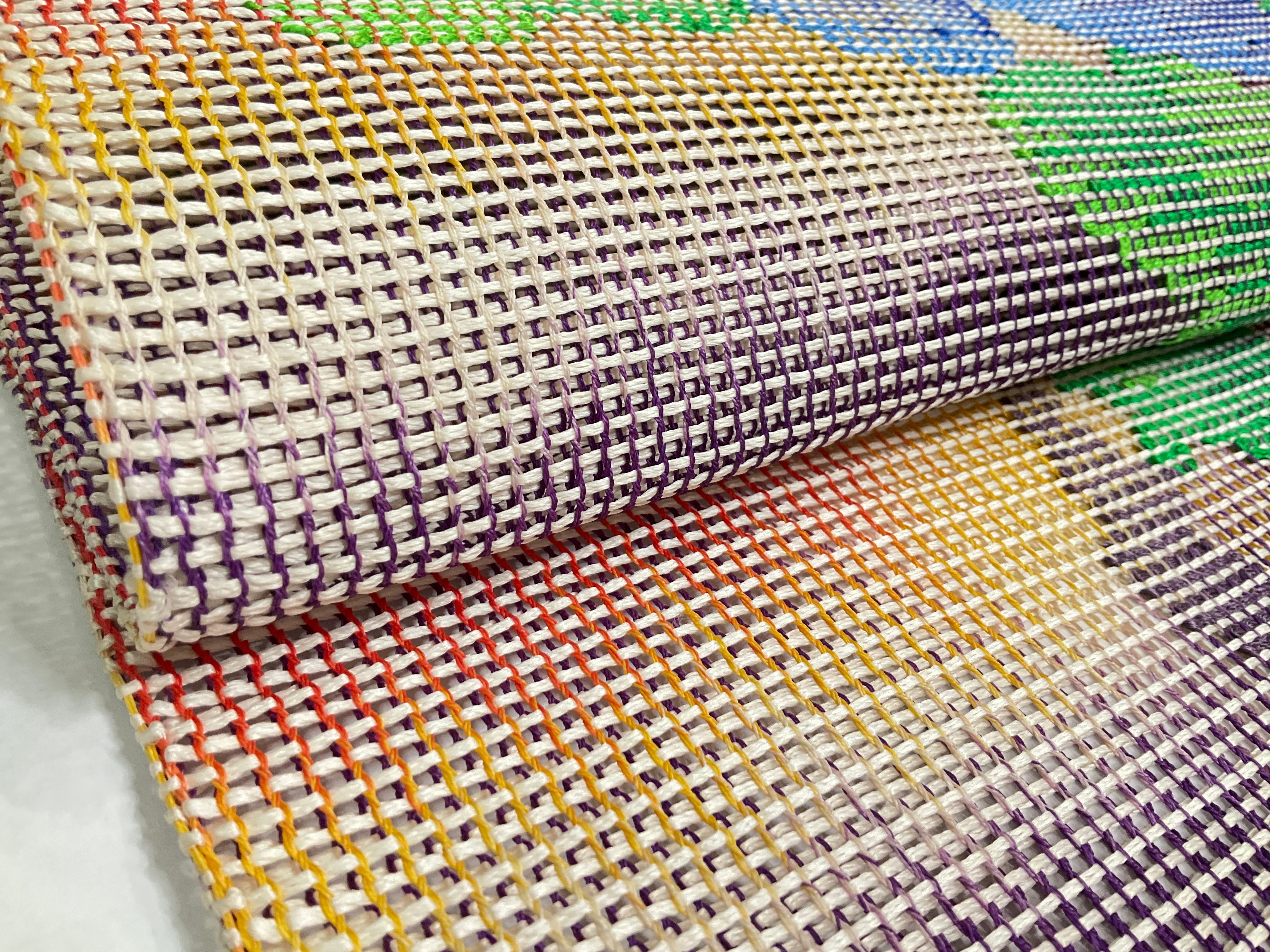 よく見ると、縦糸にはミックスカラーの糸が使われており、自然にお色が切り替わっていることで、織られた面がランダムにグラデーションになっていて、とても凝っていてオシャレですね✨