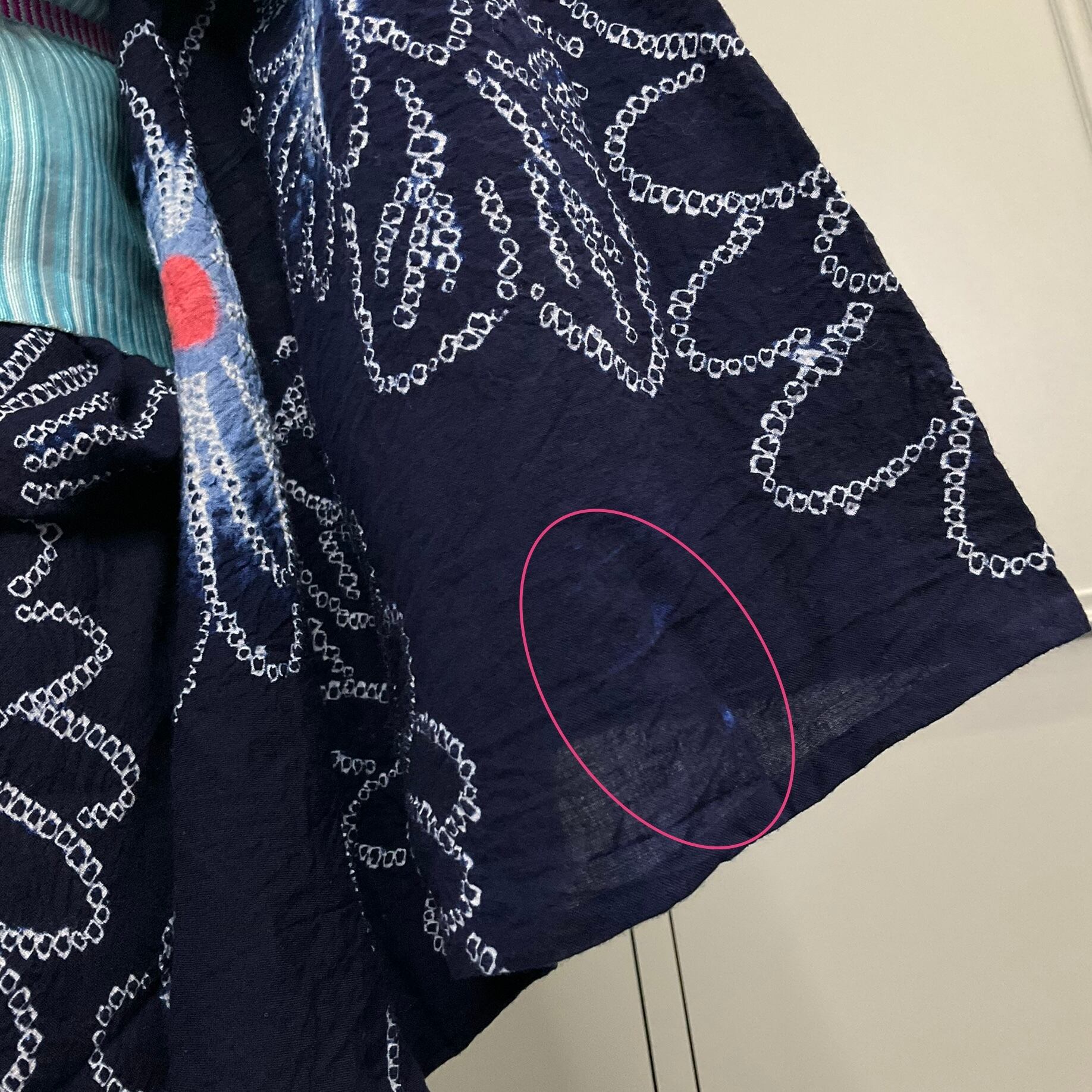 右外袖(袖口近く)に、目立ちにくいですが、少々染めムラ有り。