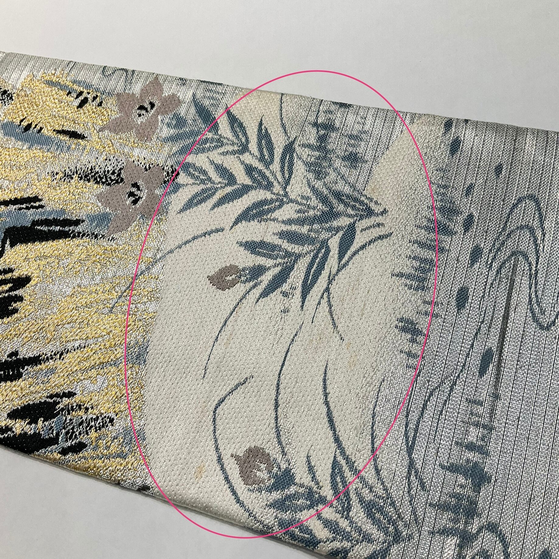 お太鼓部分·胴回り部分の白場、お太鼓裏などに、複数の小さなアク有り。