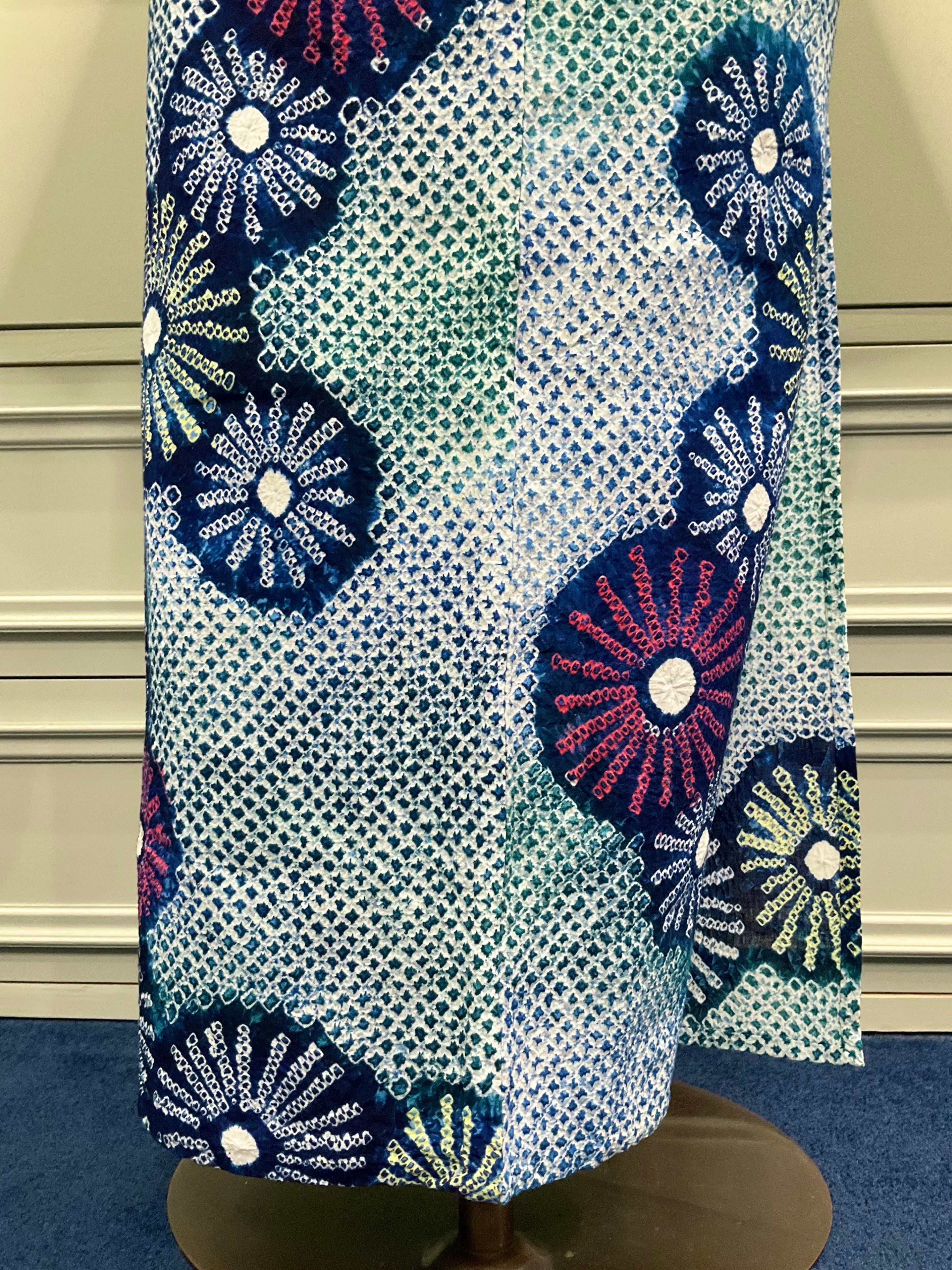 ブルー系×ホワイトの地色に、花模様がデザインされた、有松鳴海絞り浴衣です♪