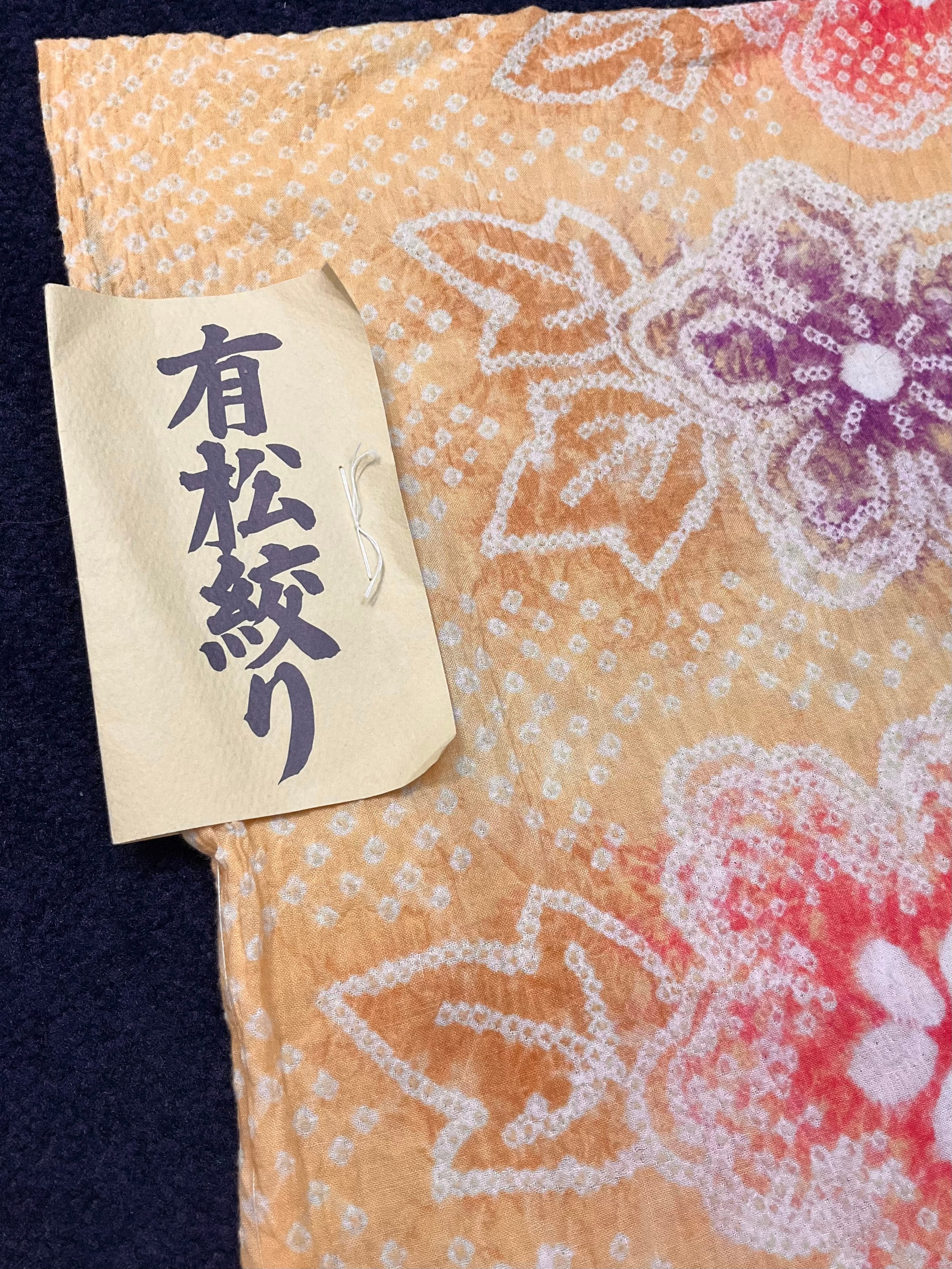 ロング*新品*有松鳴海絞り浴衣*トロピカル・オレンジ・シャーベット 0851