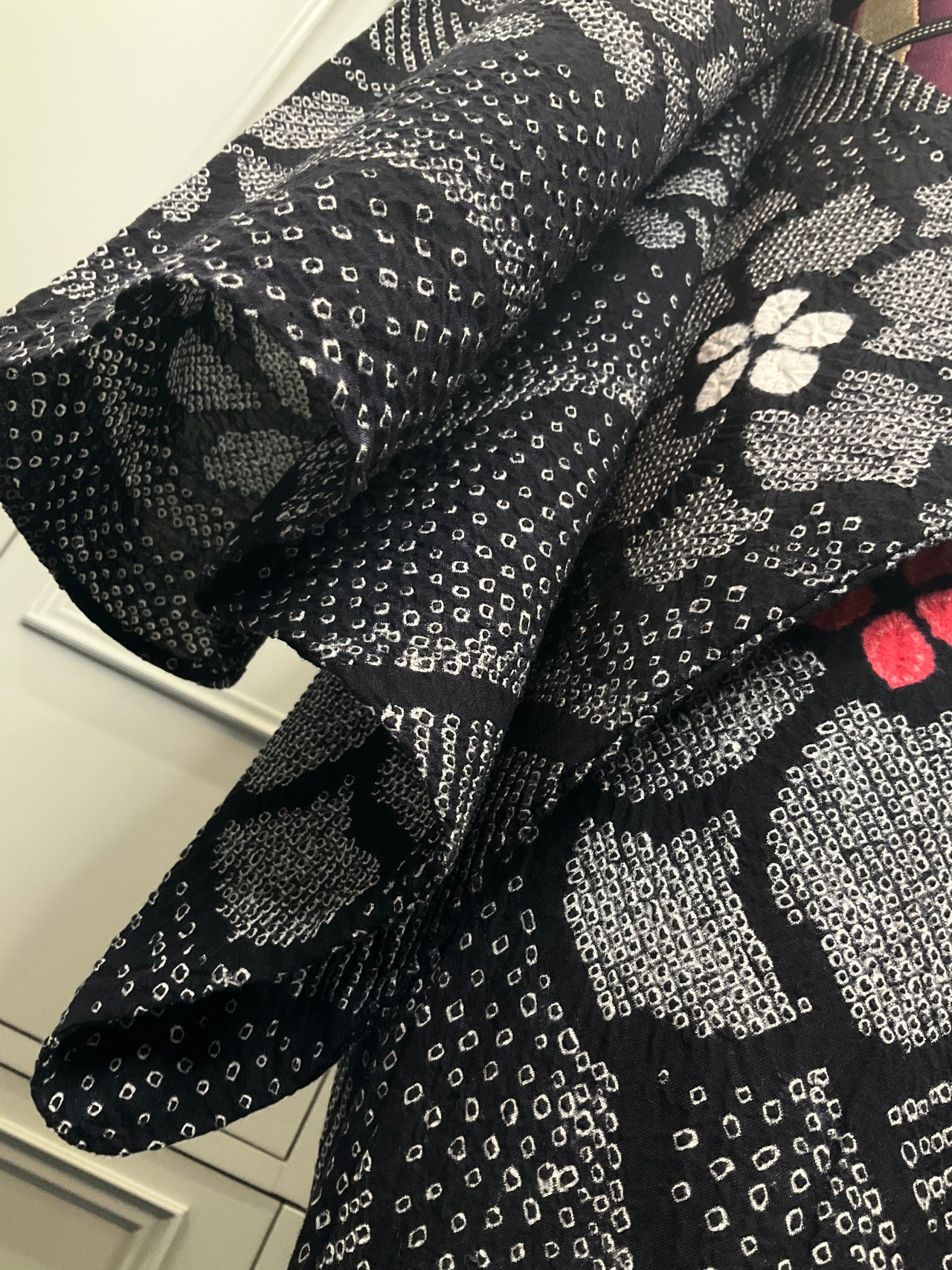 アイロンやプレスをしてしまうと絞りの風合いが無くなりますので、「絞りです、アイロンやプレスは無しで」とお伝えください。