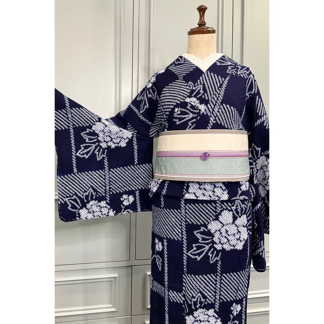 藍色と白色のみの配色なので、合わせる帯によって様々な雰囲気のコーディネートを楽しんでいただけるのも、嬉しいポイントですね♡