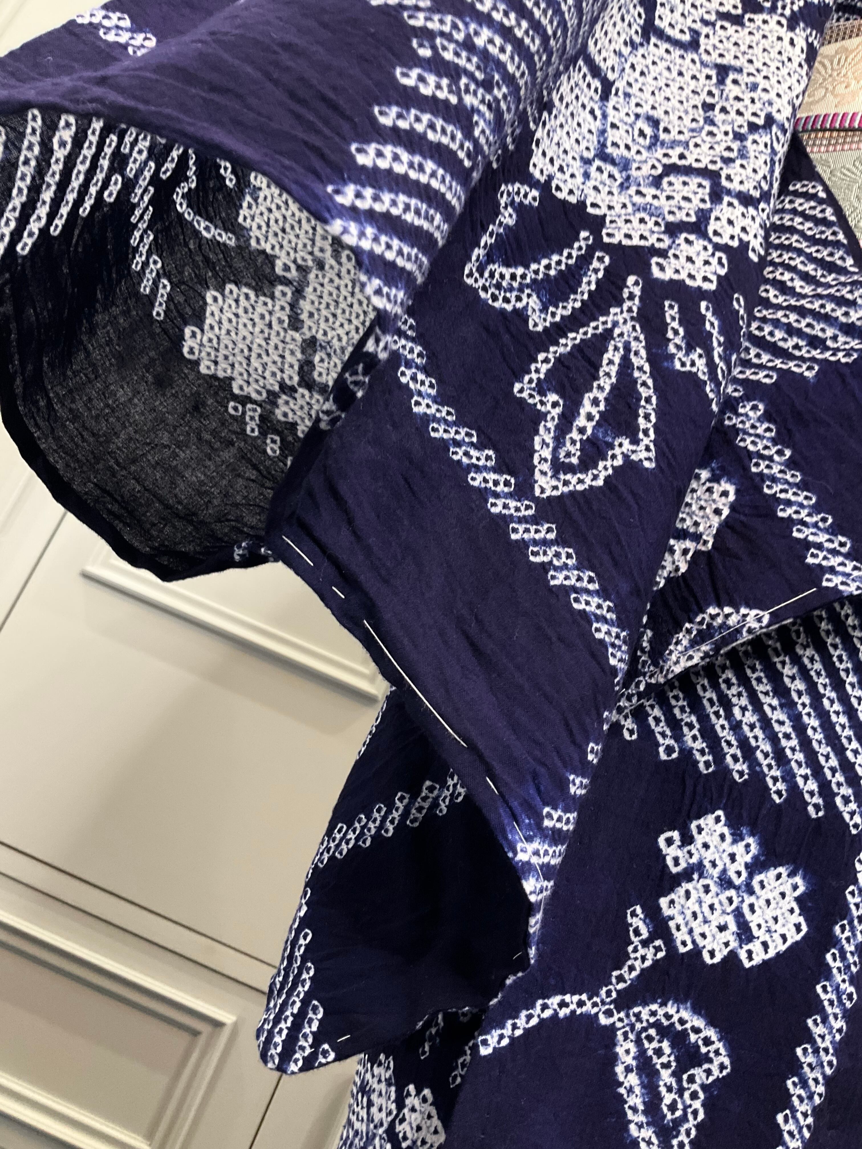 昔ながらの藍染で、藍色と白色のシンプルな配色がレトロな雰囲気のこちらの絞り浴衣。