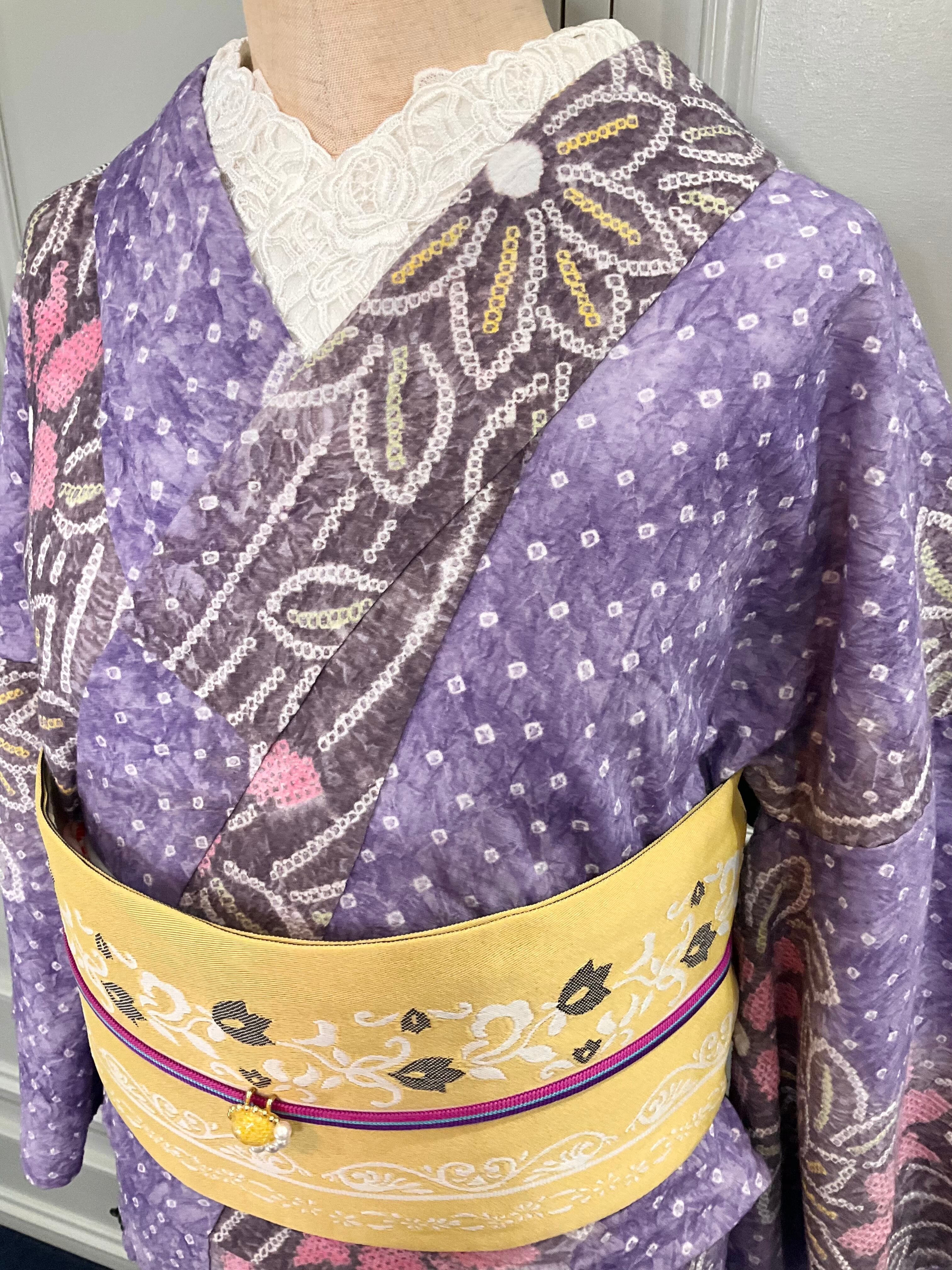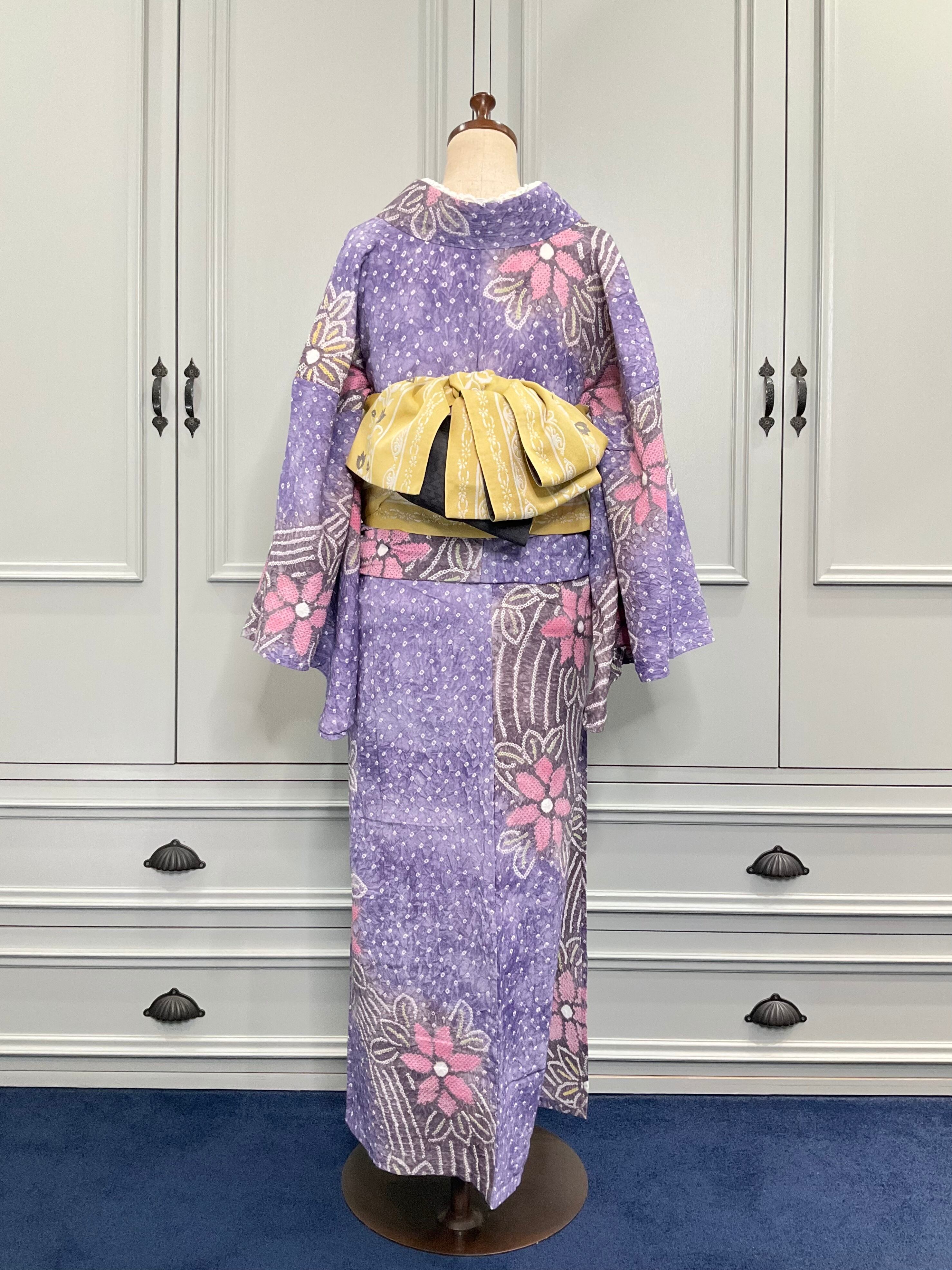 淡いパープル系の地色に、花模様がデザインされた、有松鳴海絞り浴衣です♪