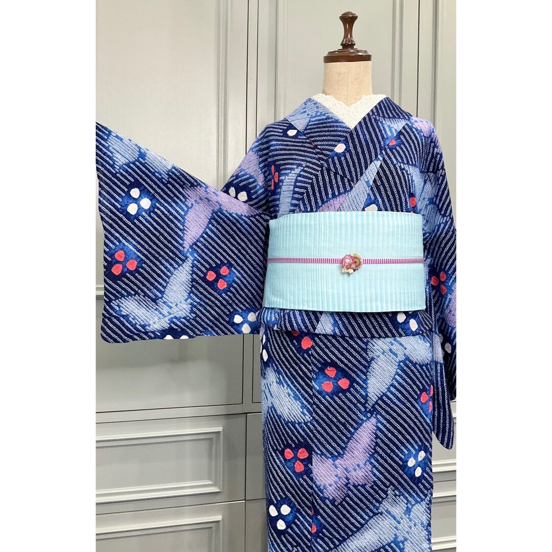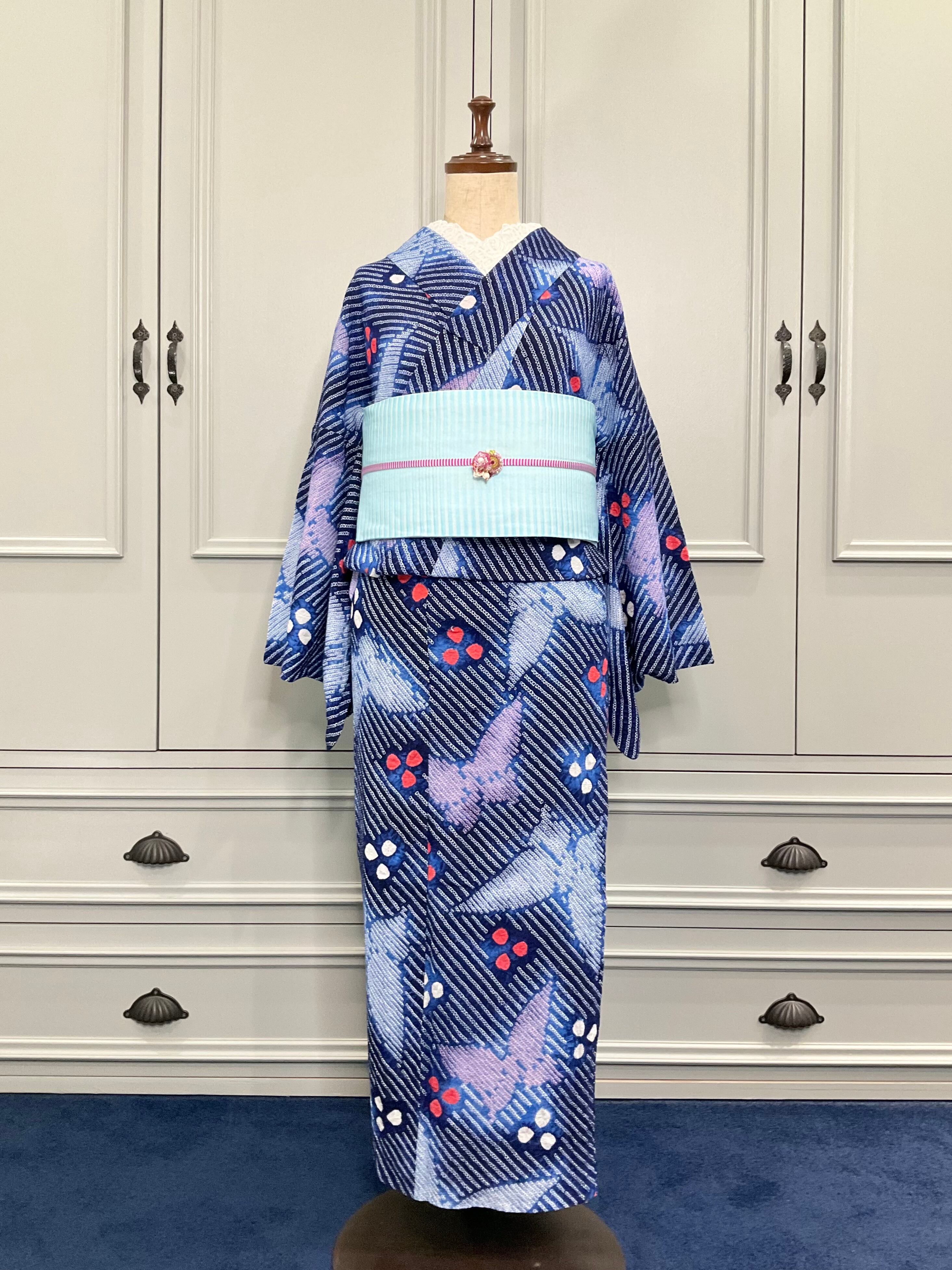 インディゴの地色に、蝶々がデザインされた、有松鳴海絞り浴衣です♪