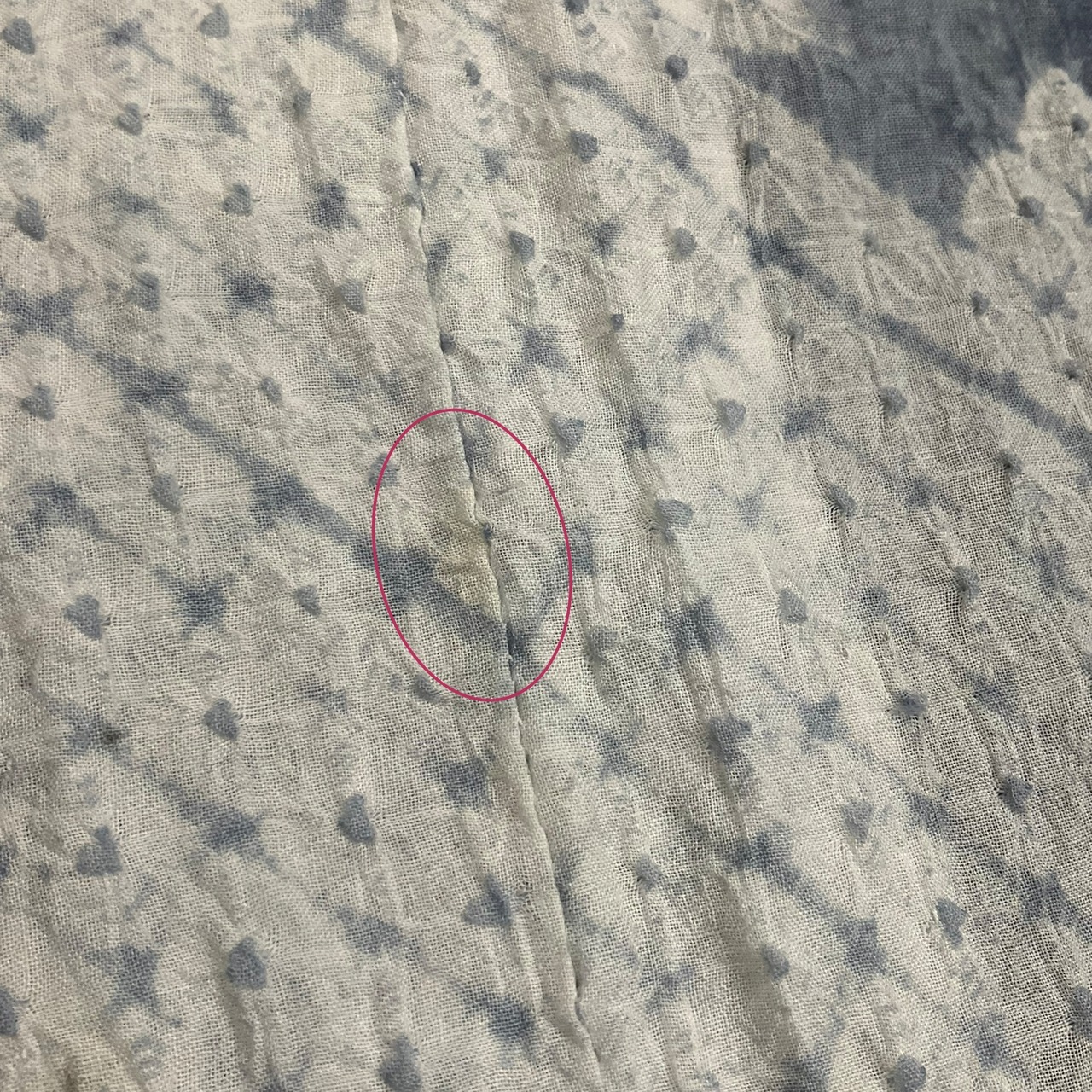 アイロンやプレスをしてしまうと絞りの風合いが無くなりますので、「絞りです、アイロンやプレスは無しで」とお伝えください。