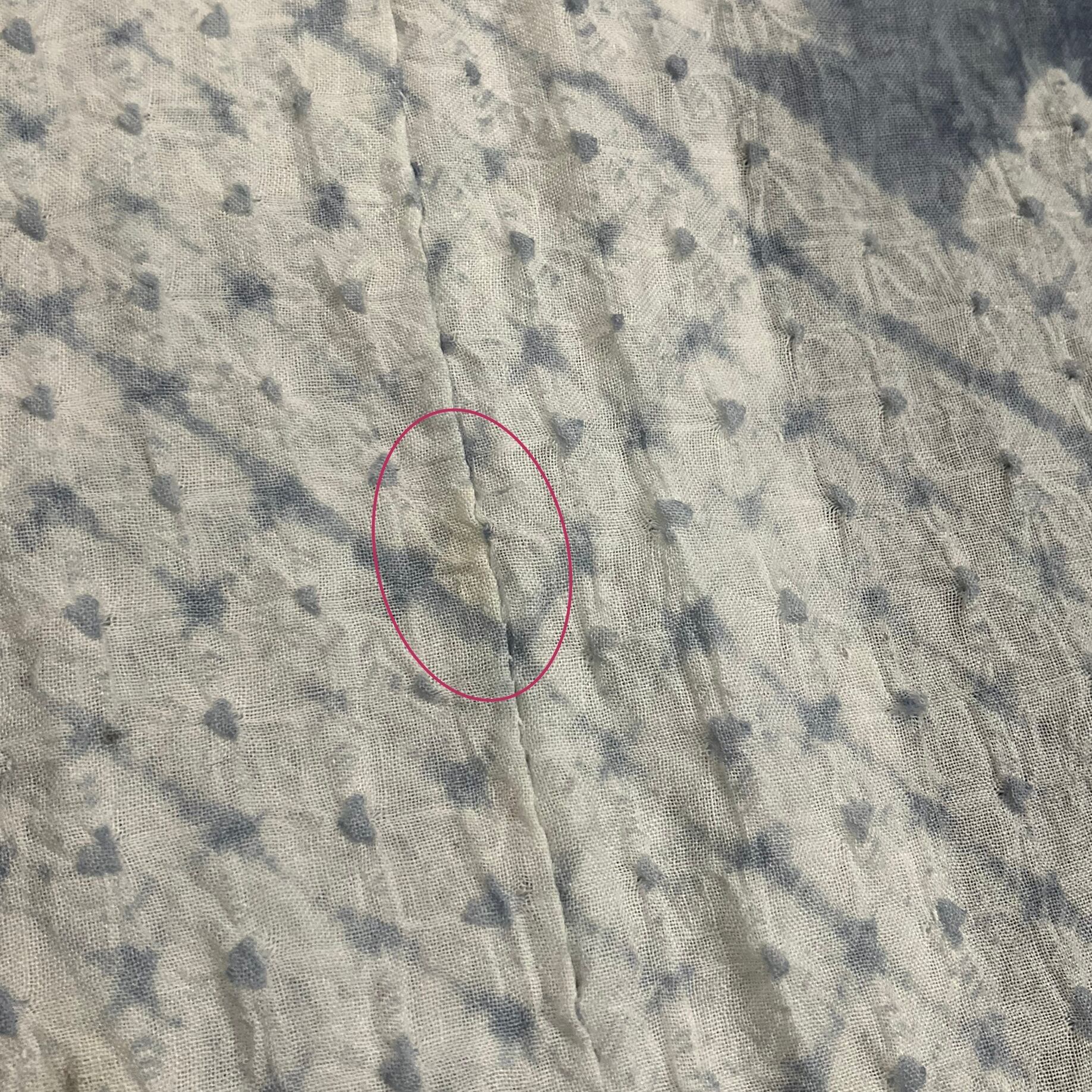 上前衽(腰のあたり)に、目立ちにくいですが、うっすら小さな変色有り。
