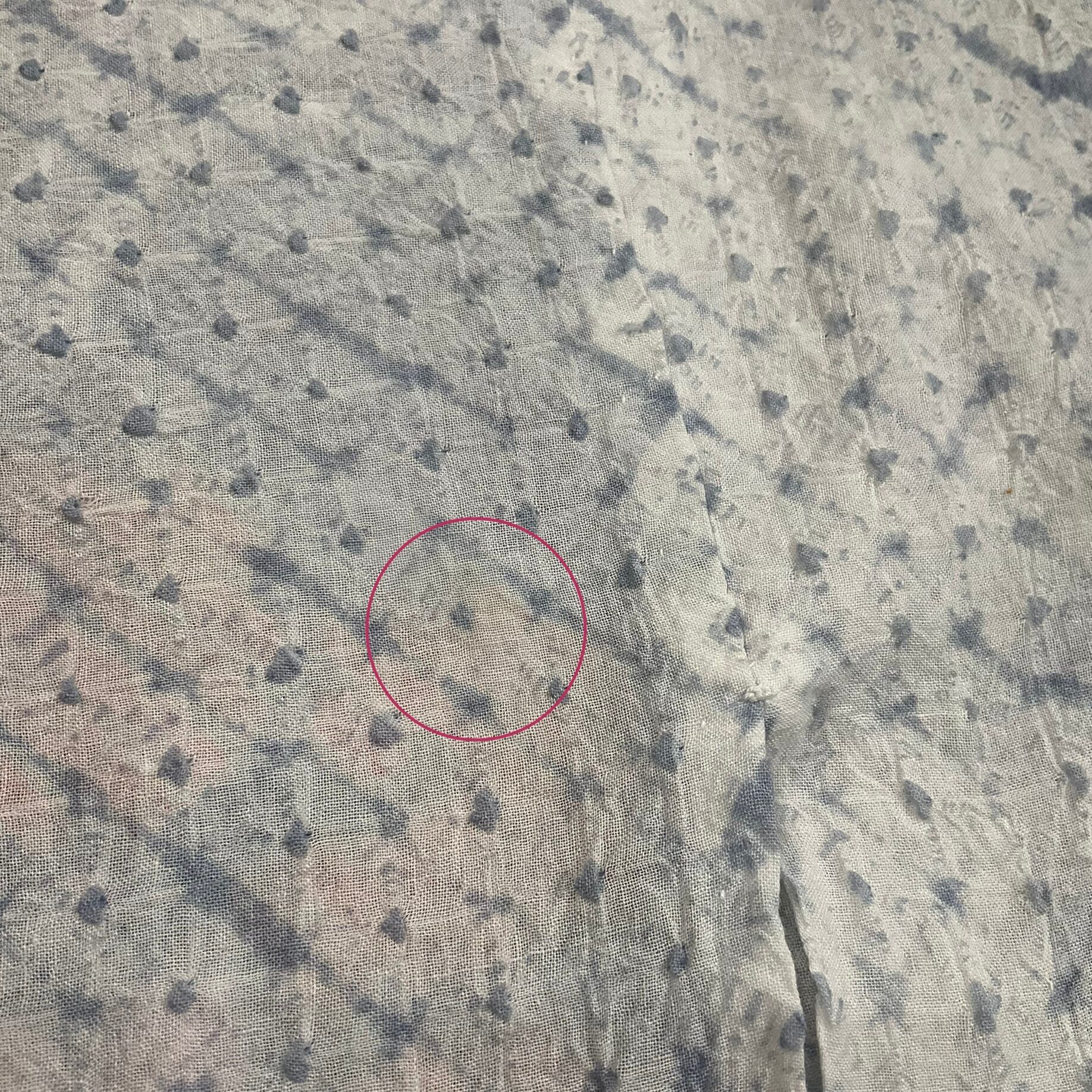 左後身頃(裾から約80cmあたり)に、うっすらくすみ有り。