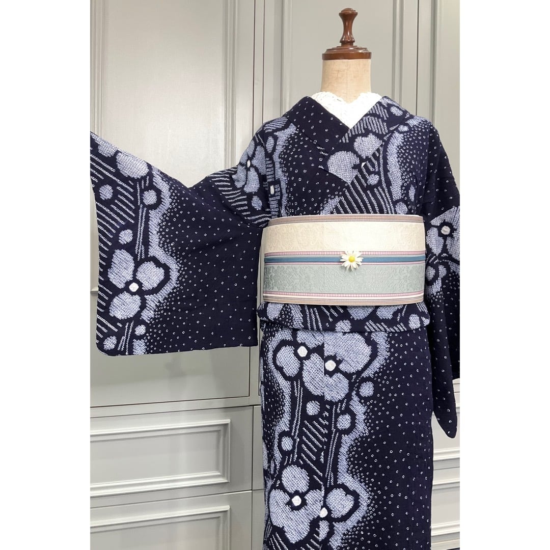 有松鳴海絞り浴衣*藍色 ふわり、花の行方 0895