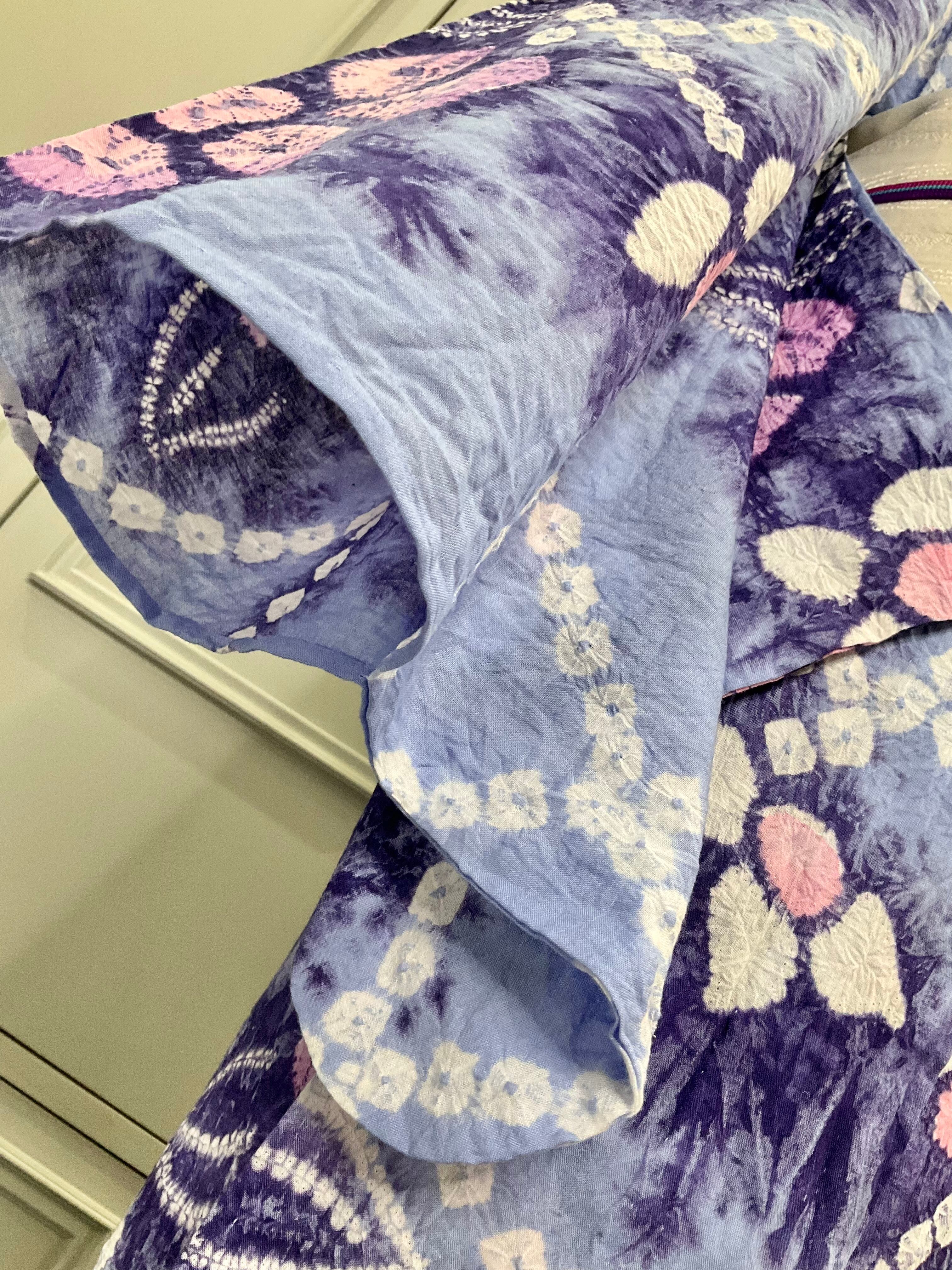 ブルーパープル系の地色に、花模様がデザインされた、有松鳴海絞り浴衣です♪