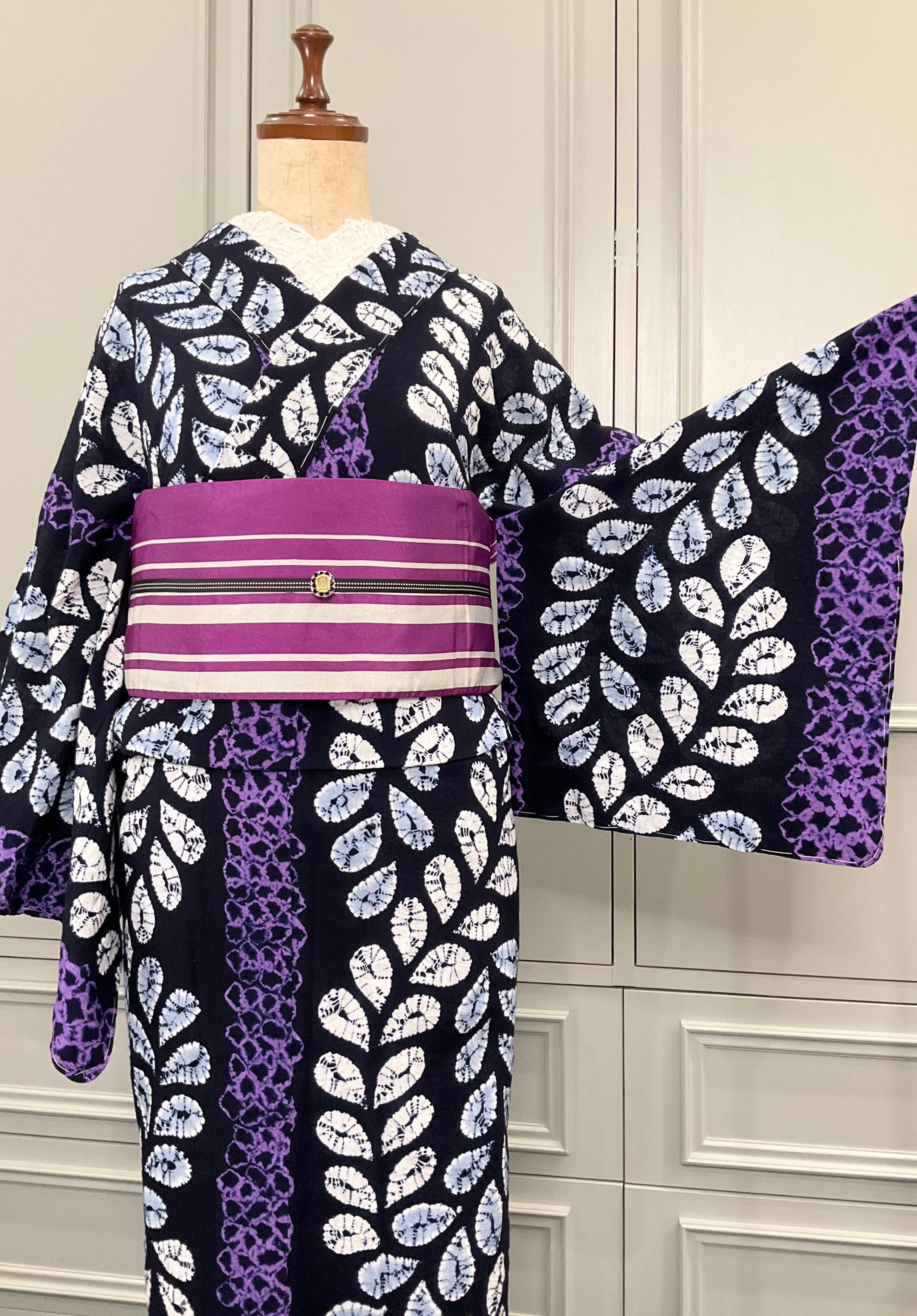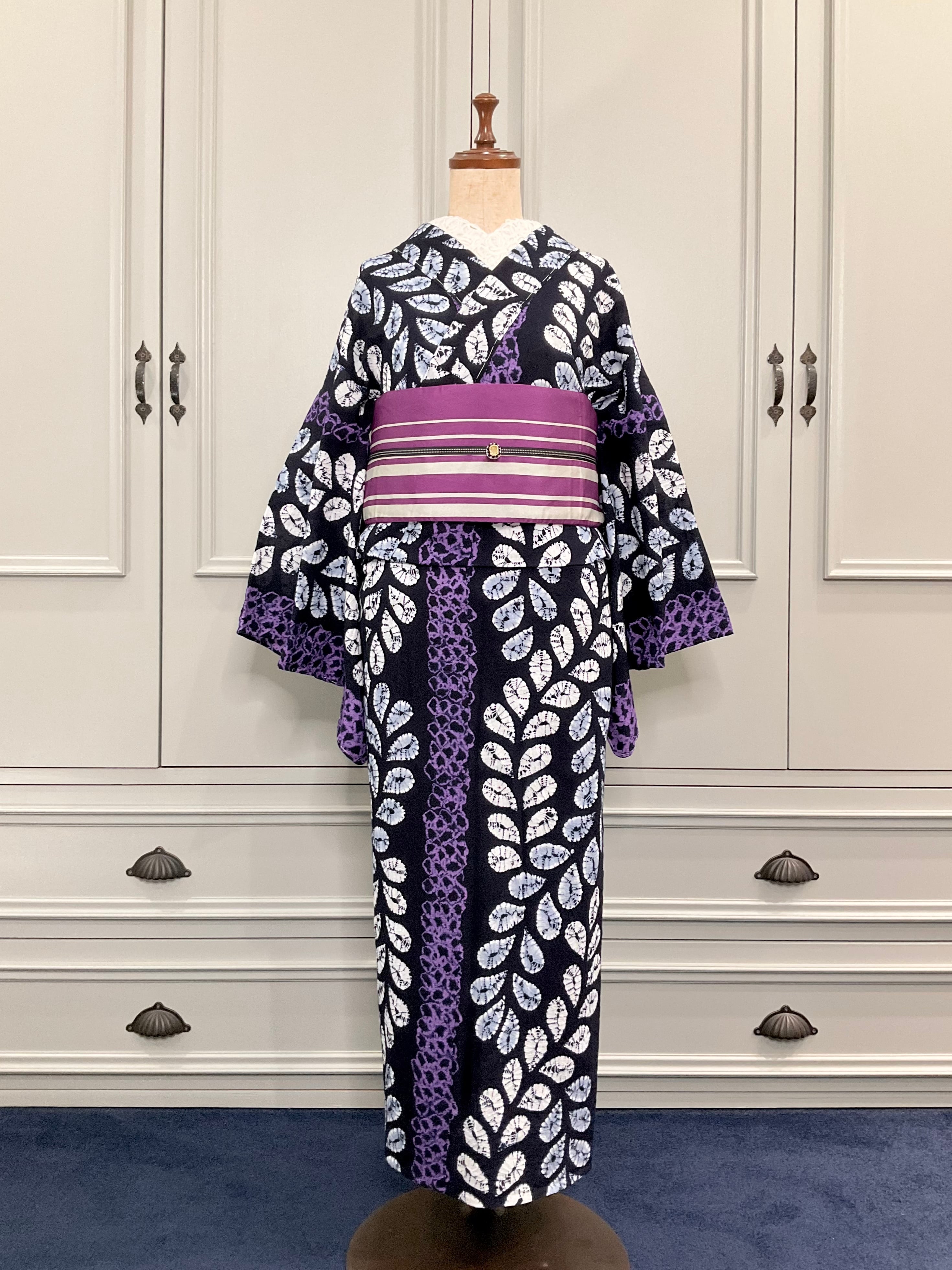 有松鳴海絞り浴衣*ブラック×パープル 雫 0907