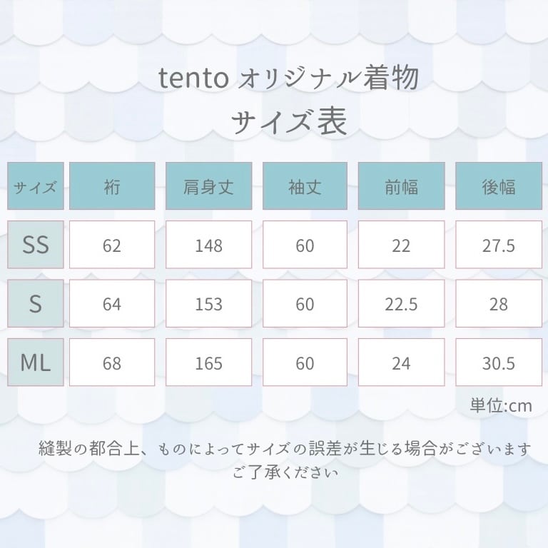 縫製の都合上、ものによってサイズに誤差が生じる場合がございます、ご了承ください。