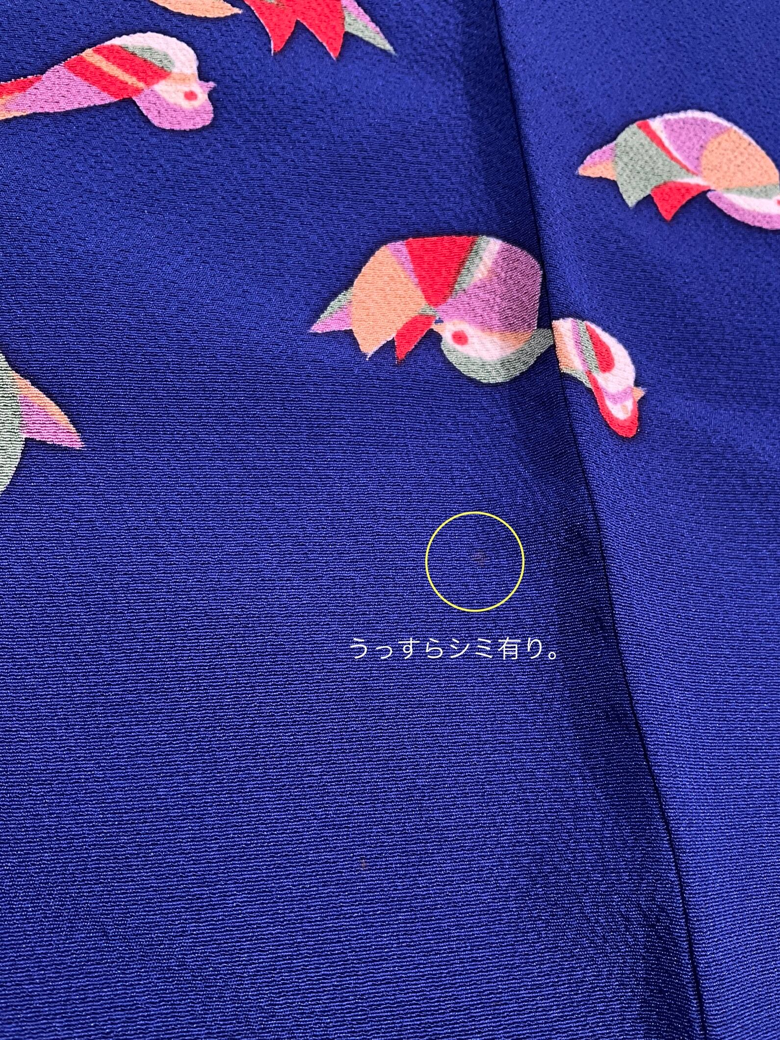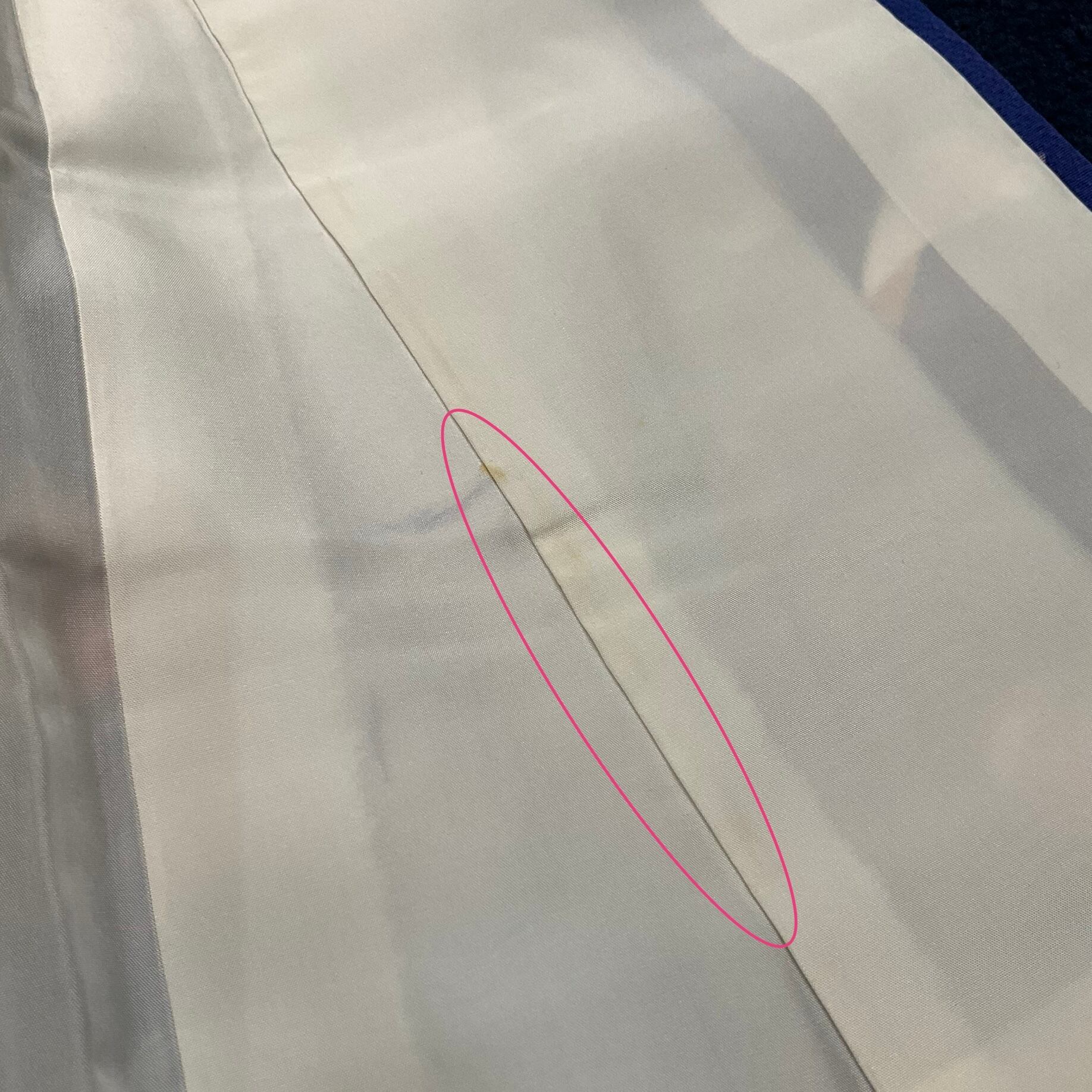 胴裏(両側の衿と衽の間あたり)に、うっすら変色有り。