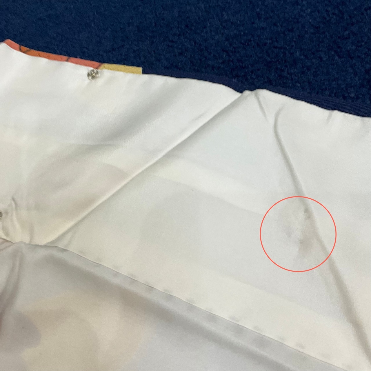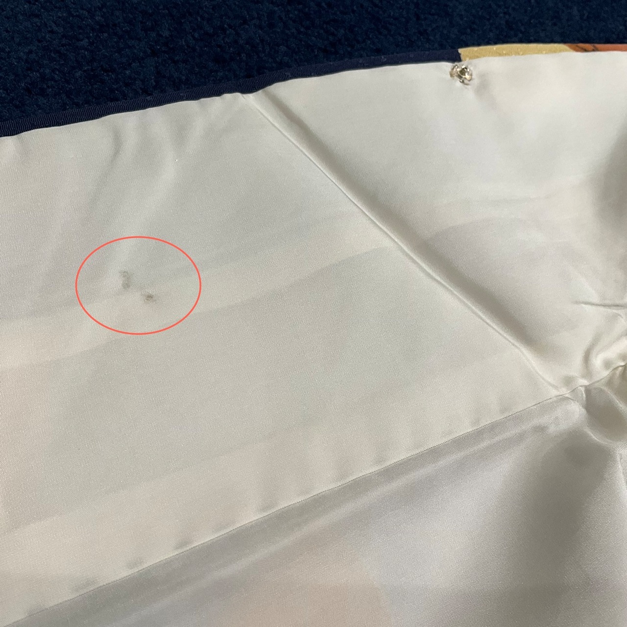衿裏すぐ下のあたりに、目立ちにくいですが、小さな黒点有り。