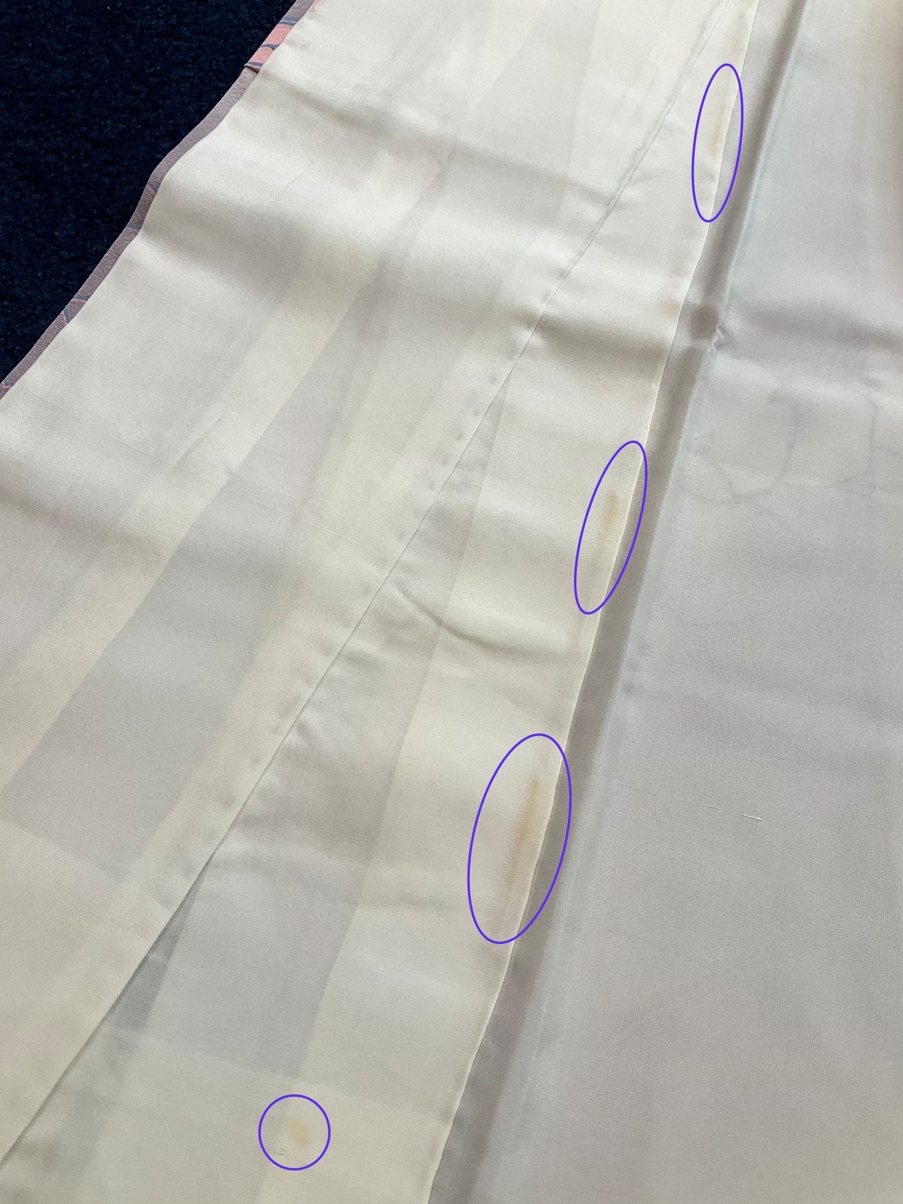 上前の衽(裏面・八掛部分)に、うっすら小さなくすみ有り。